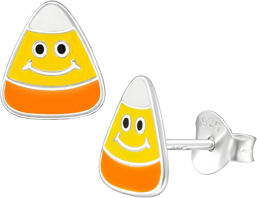 This Beautiful 9mm Candy Corn Earrings 925 Sterling Silver Dainty Studs Push Back. Great Gift Ideas.