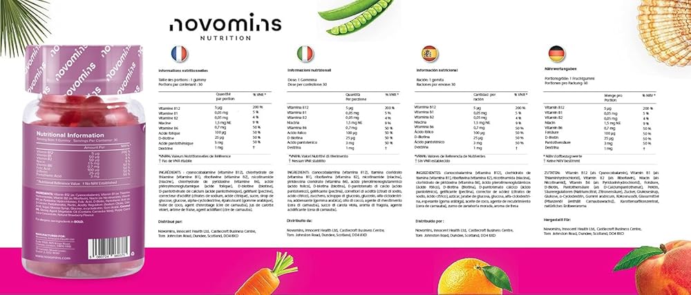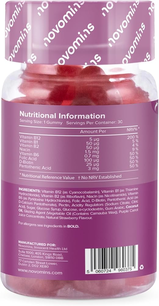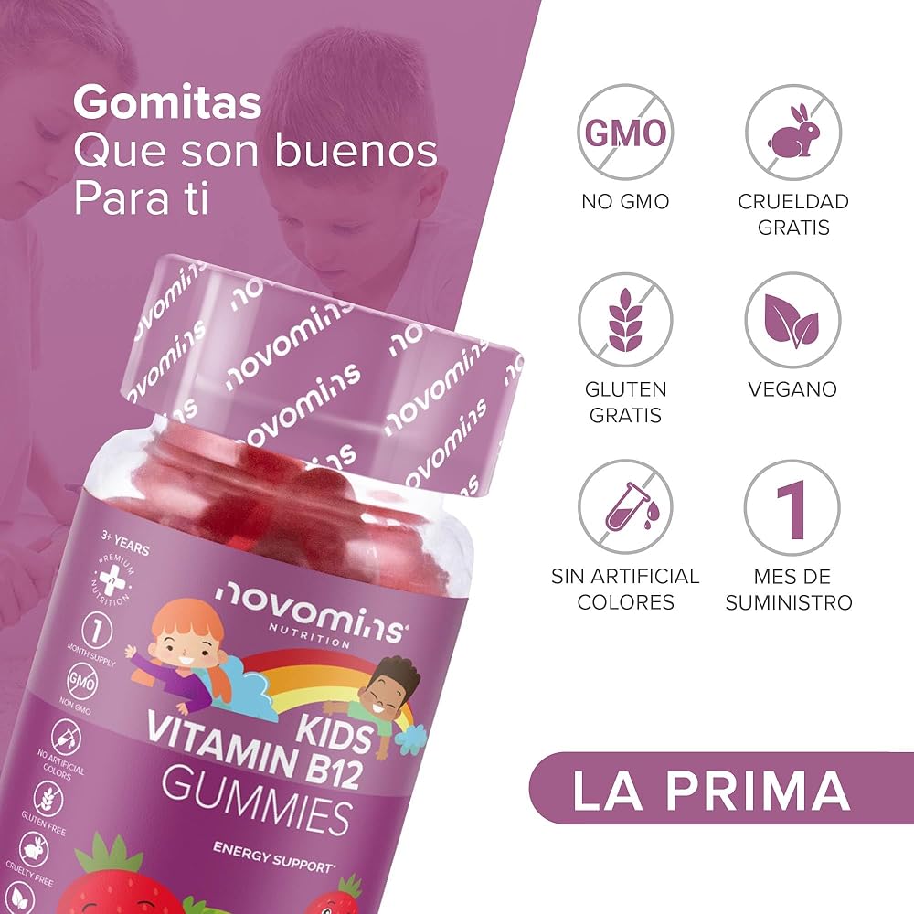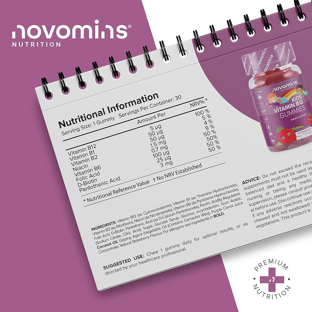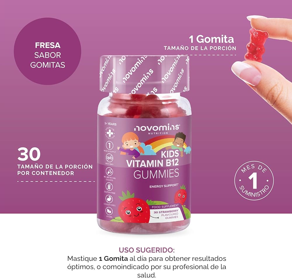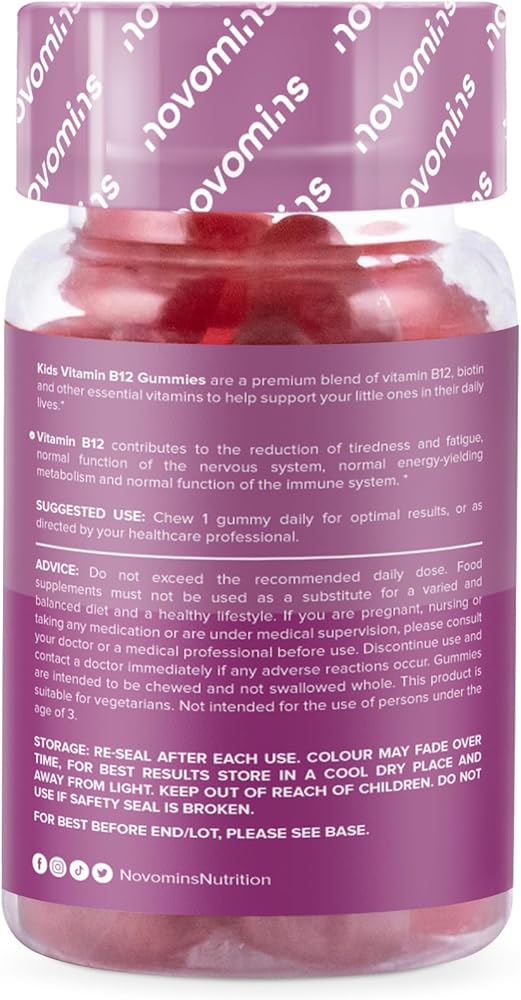 WHY NOVOMINS VITAMIN B12 GUMMIES: Novomins prides itself in bringing you the highest quality supplements whilst being safe and ethically sourced. Our Kids Vitamin B12 Gummies are produced under the strictest manufacturing standards (GMP) with the purest quality ingredient, ethically sourced and easily digestible. We also offer a full money back guarantee if you're at all dissatisfied, please contact us through amazon.