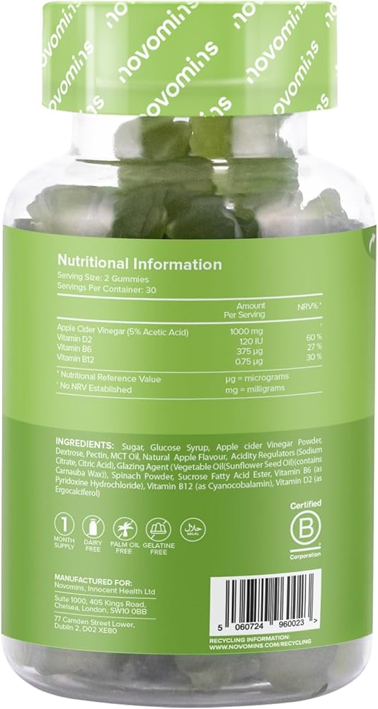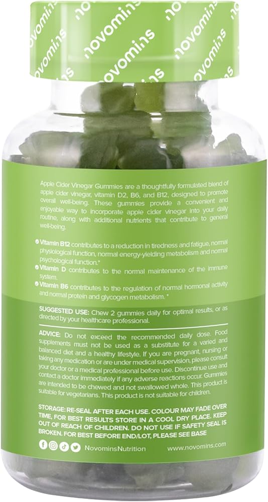 WHY NOVOMINS APPLE CIDER VINEGAR GUMMIES: Novomins prides itself in bringing you the highest quality supplements whilst being safe and ethically sourced. Our Apple Cider Vinegar Gummies are produced under the strictest manufacturing standards with the purest quality ingredient, ethically sourced and easily digestible. We also offer a full money back guarantee if you're at all dissatisfied with our apple cider vinegar gummy. Simply get in touch via amazon.