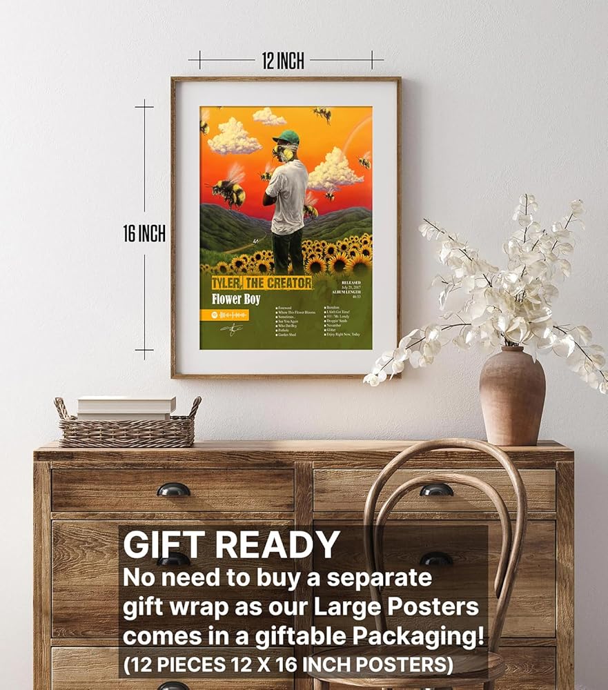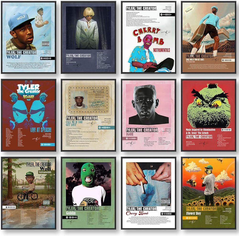 ملصق JZHLLOY Tyler The Creator، ملصقات غلاف الألبوم إصدار محدود، ديكور جداري جمالي للموسيقى للمنزل والمكتب، هدايا لمحبي الموسيقى (ملصق كبير مقاس 12 × 16، مجموعة من 12)