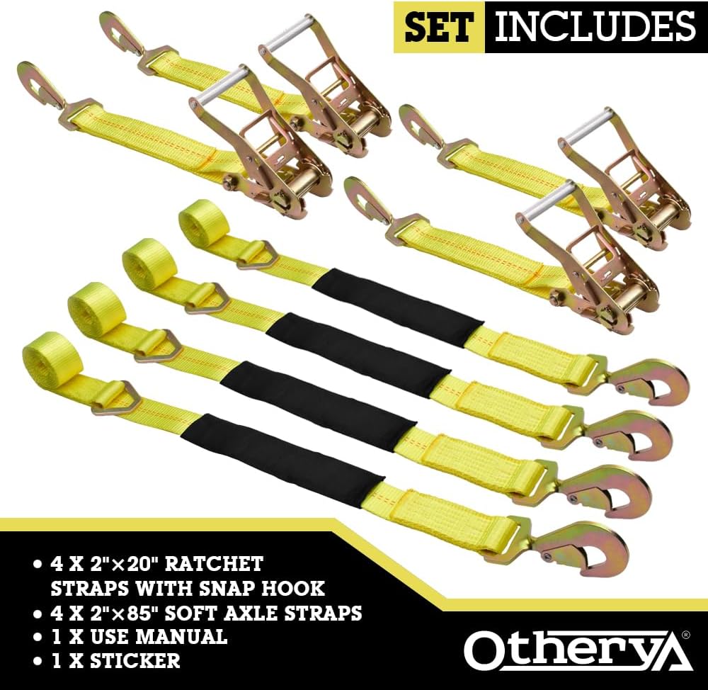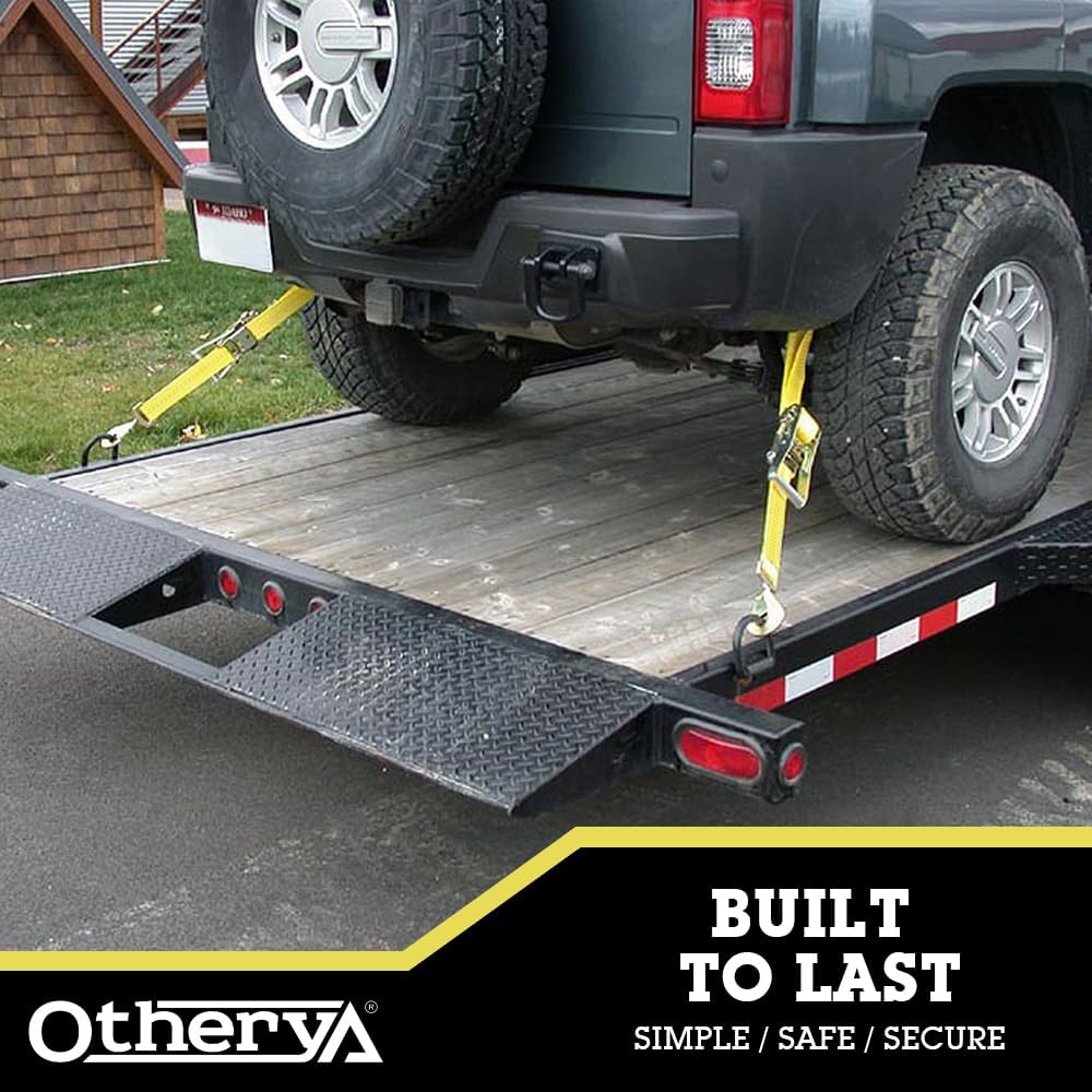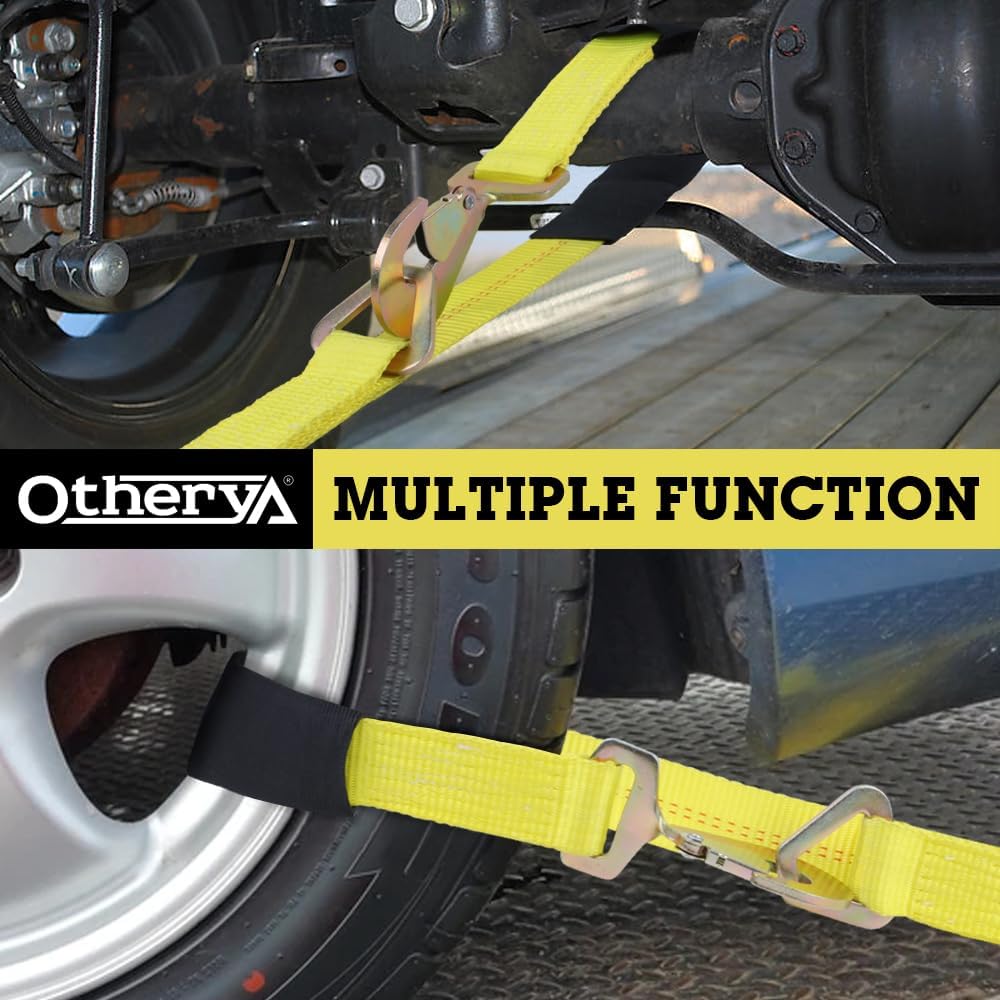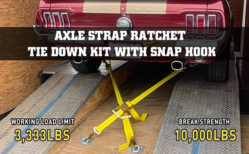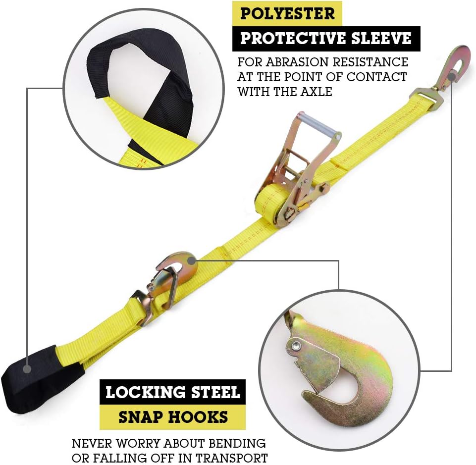 【سهلة الاستخدام】خطاف كبس على كلا الطرفين يتم ربطه بسهولة بالحلقة على شكل حرف D حول المحور أو الحافة. ما عليك سوى إعادة الحزام إلى نفسه ثم ربط الطرف الآخر بنقطة التثبيت لتأمين حمولتك أثناء النقل