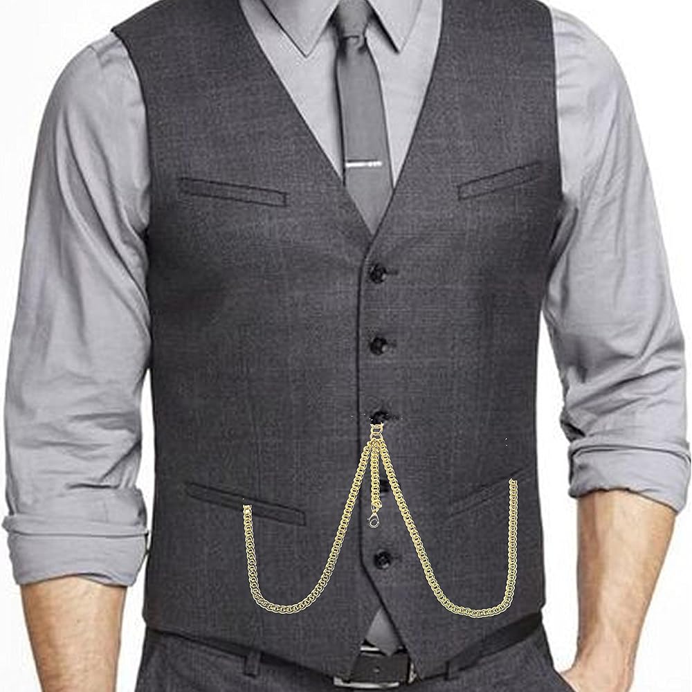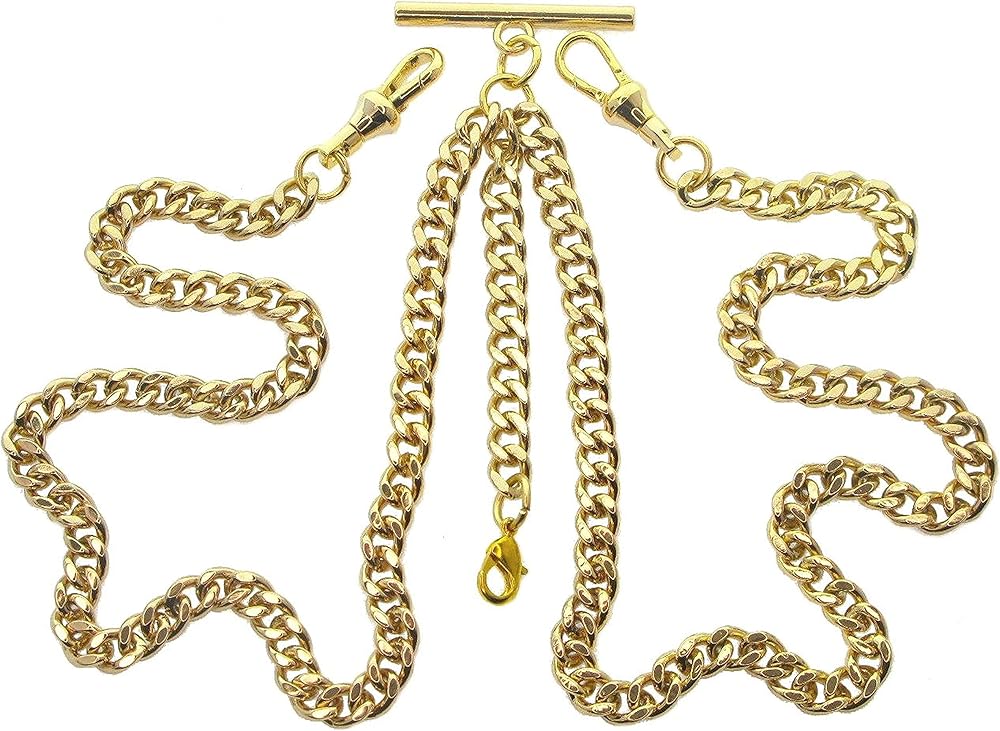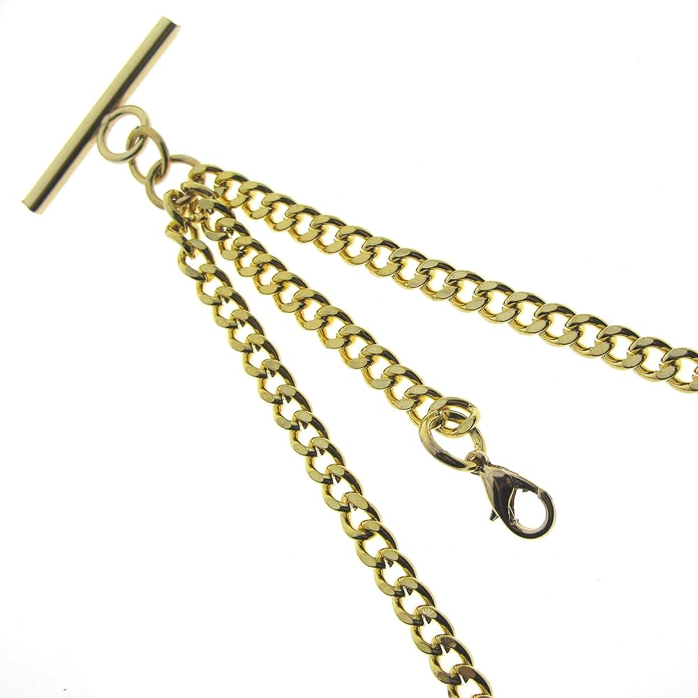 سلسلة ألبرت المزدوجة ساعة جيب ذهبية اللون سلسلة سترة مع مشبك جراد البحر على قطرة وT-Bar 2 مشبك دوار AC01A