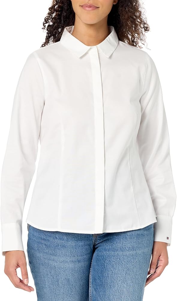 This Tommy Hilfiger Women's Sportswear Shirt is a Long sleeve collared button up shirt with cuffed sleeves