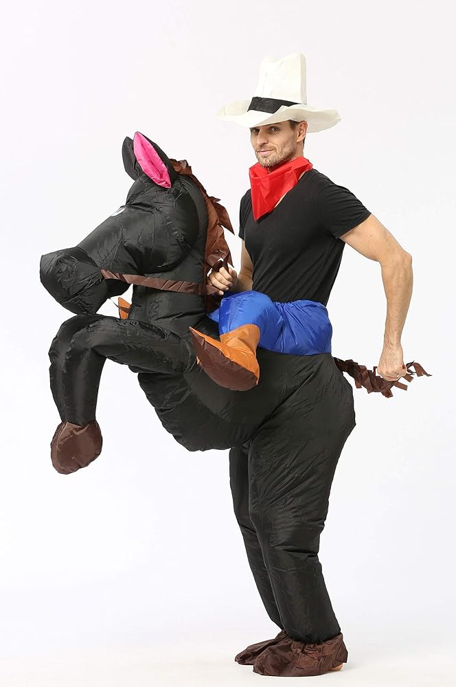Inflatable Design: Inflatable horse costume is designed with high-quality materials. The inflatable design makes you more eye-catching in the crowd and adds more fun to your party.