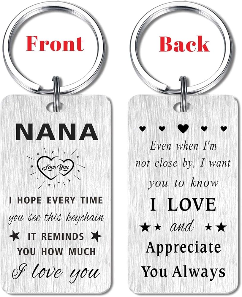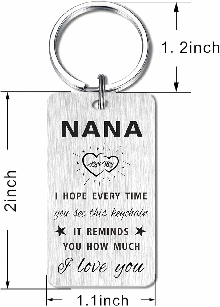 • Mothers Day Gifts For Nana - The best nana keychain engraved both side" front side: nana, I hope every time you see this keychain, it reminds you how much I love you, back side: even when I am not close by, I want you to know I love and and appreciate you always."