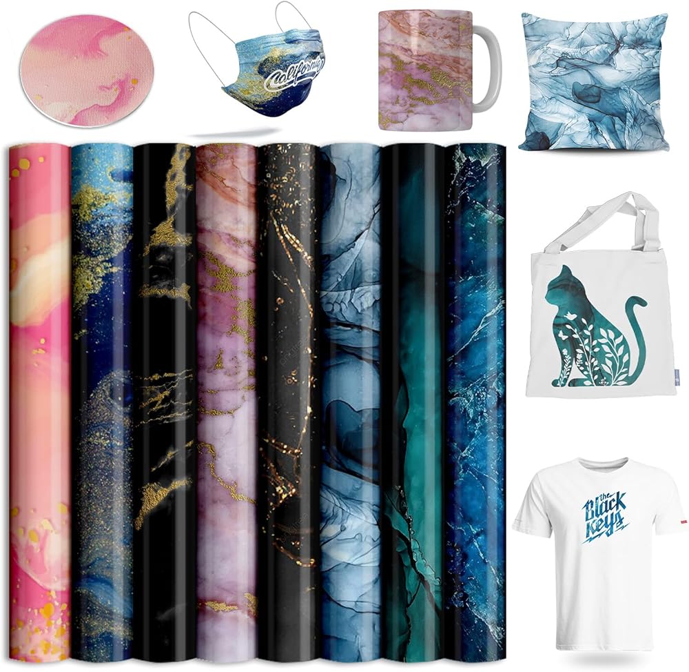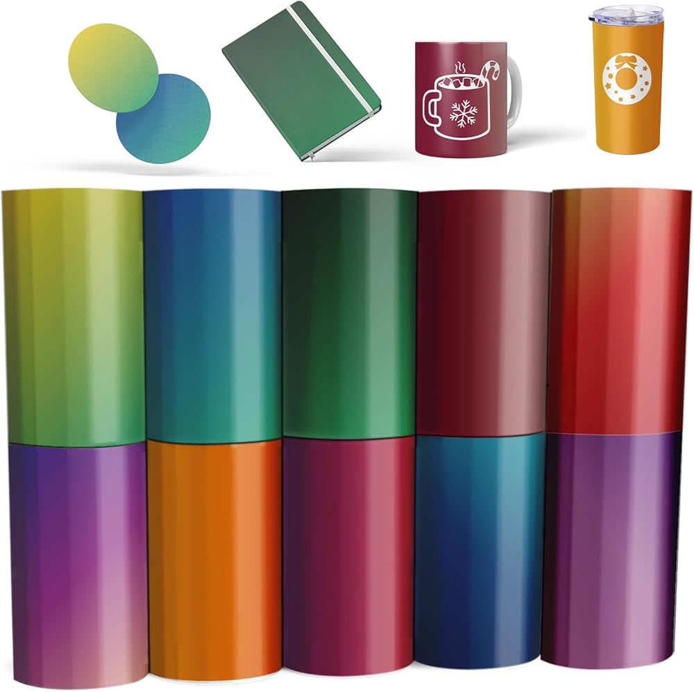 أوراق نقل - أوراق فينيل نقل الحرارة بالتسامي لآلة الضغط الحراري، أوراق نقل متدرجة 10.16 سم × 12.7 سم لحقيبة حمل الأكواب والقمصان، 10 ورقات