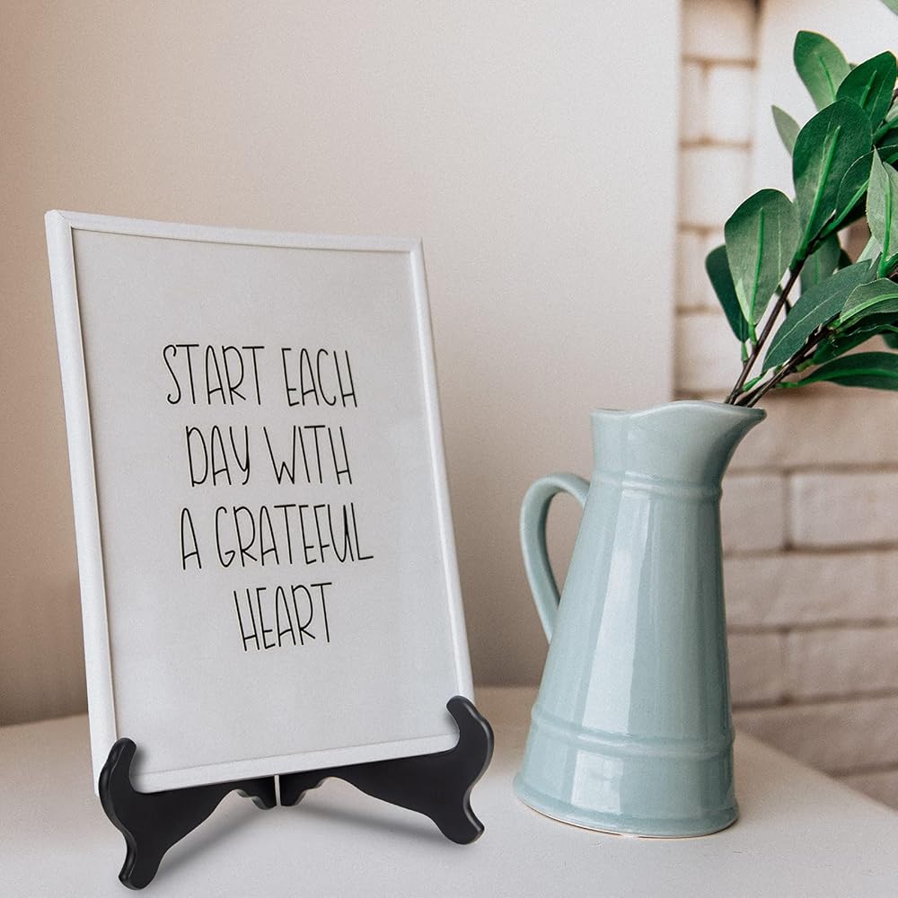 4 packs black wooden display stand plate holder easels, 7 inches tall