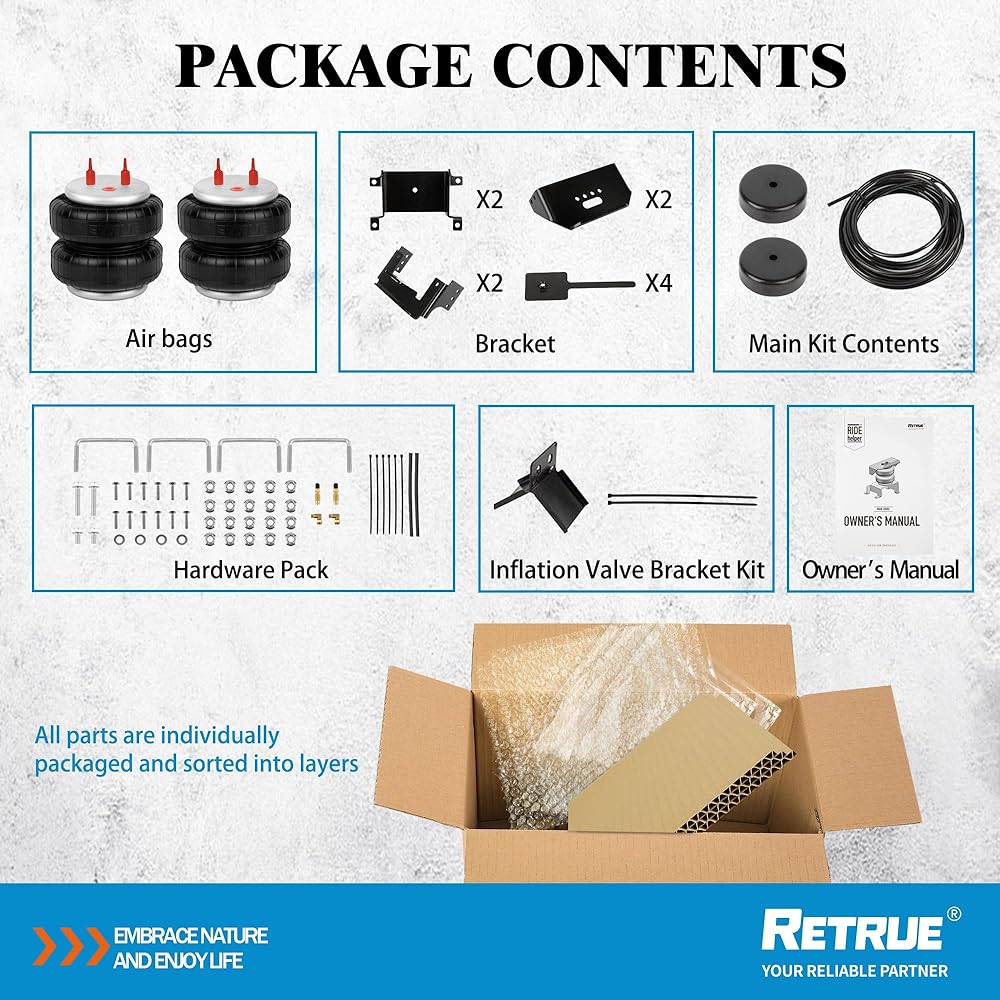 نوابض هوائية قابلة للتعديل بالكامل لضبط مستوى سيارتك عند سحب أو سحب حمولة ثقيلة من أجل قيادة آمنة ومريحة
