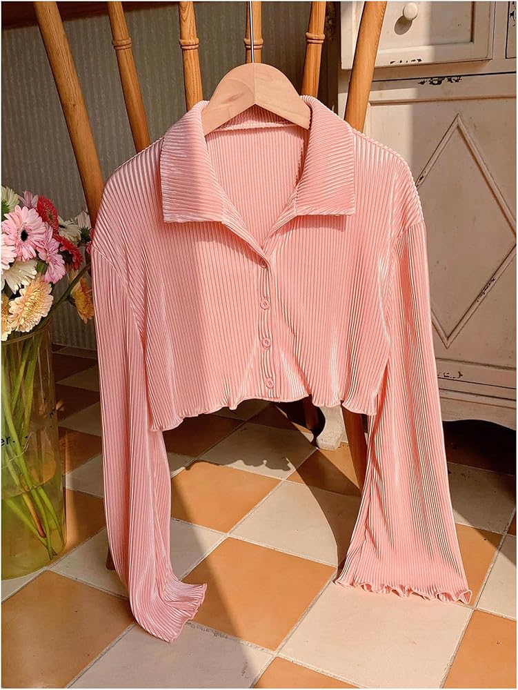 • Designs: Blouses for women dressy casual, button, lettuce trim, long sleeve, collared neck, cropped, casual, trendy, lightweight