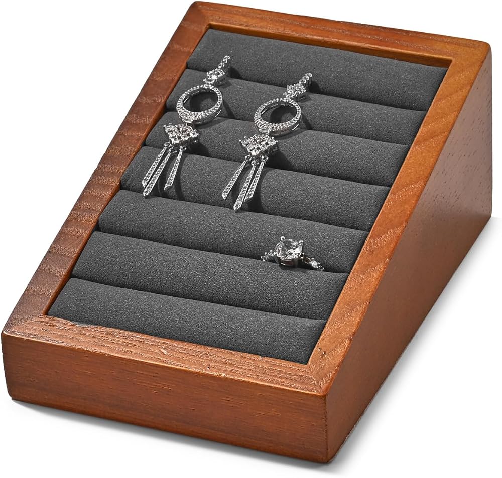 صينية عرض مجوهرات من الخشب الصلب، حامل عرض خاتم مجوهرات مشقوق، عرض منظم المجوهرات، حامل حلقي لعرض التجارة (رمادي)