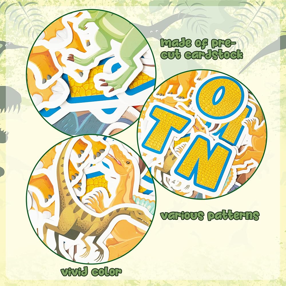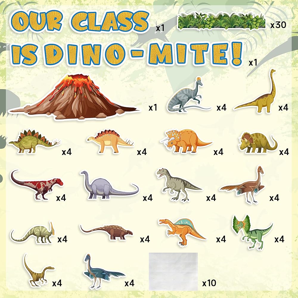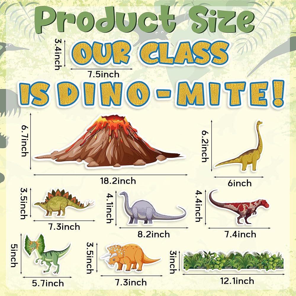 مجموعة ضخمة: ستحصل على 119 قطعة، مع 16 تصميم ديناصور، 4 من كل منها، 64 في المجموع. كبيرة "فئتنا هي DINO-MITE!" كلمات وقطعة بركان واحدة. 200 غراء لك. كافية لتزيين مدرستك ذات الطابع المتنوع، وأبواب الفصل الدراسي، ولوحات الإعلانات وما إلى ذلك.