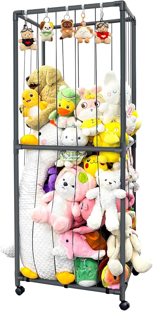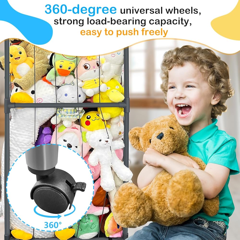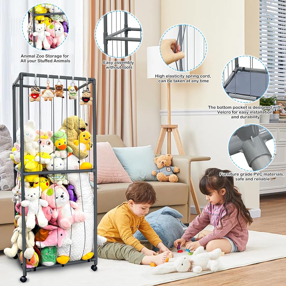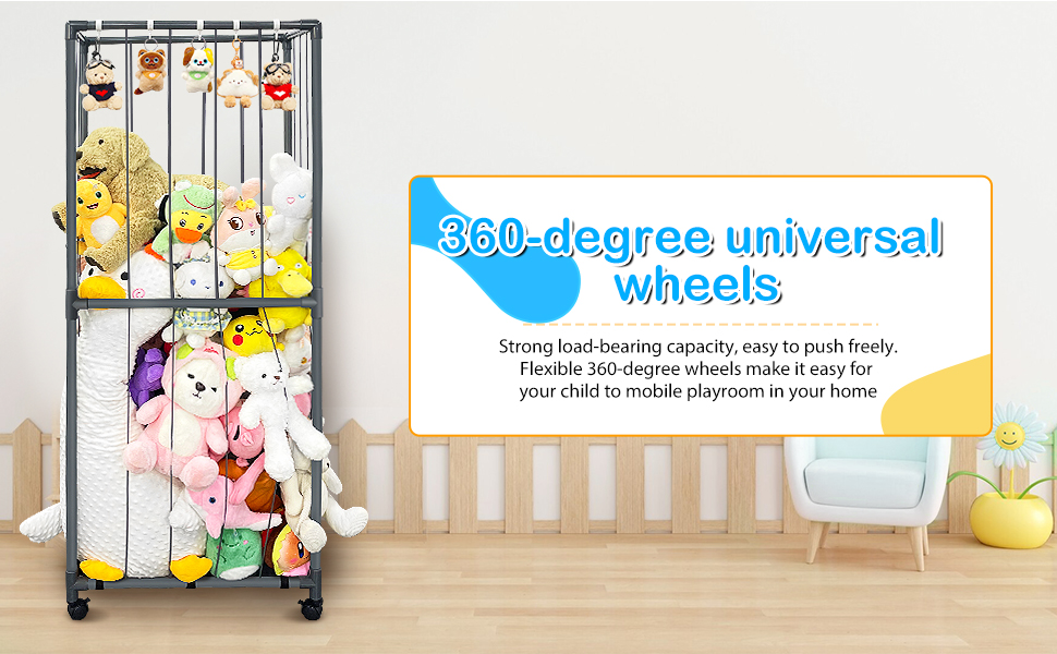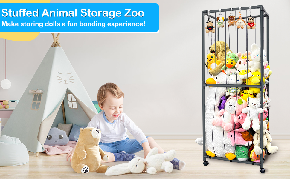 【ترقية تخزين حديقة الحيوانات المحشوة بعجلة عالمية】: رف ألعاب قوي وخفيف الوزن مع 4 عجلات عالمية تسمح لك بتحريك حديقة الحيوان بسهولة في جميع أنحاء المنزل. واللعب في أي وقت وفي أي مكان في غرفة النوم وغرفة المعيشة وغرفة اللعب مع مساحة تخزين حديقة الحيوان الخاصة بنا. .