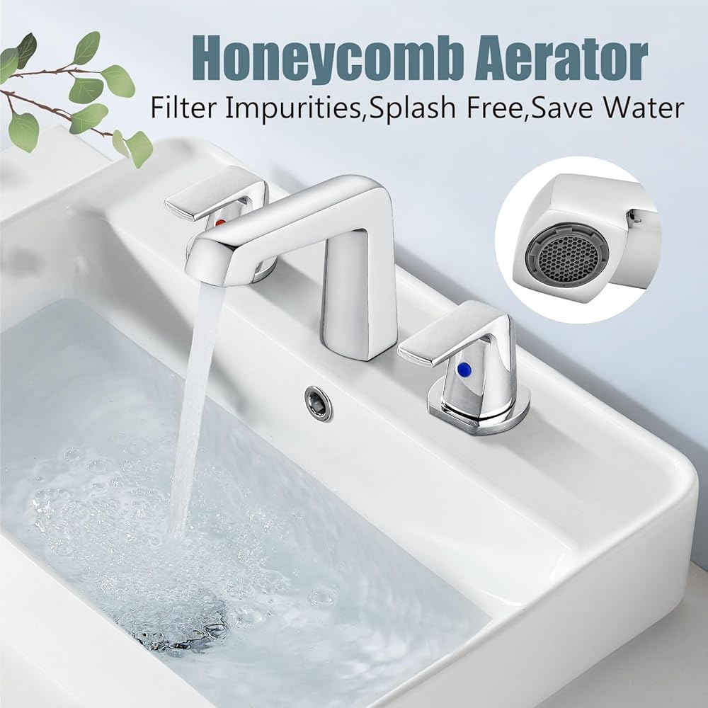 aolemi 8 بوصة واسعة النطاق بالوعة الحمام الحنفية 3 ثقوب اثنين مقبض سطح شنت مرحاض الغرور حوض خلاط صنبور مع يطفو على السطح استنزاف الجمعية، النيكل المصقول