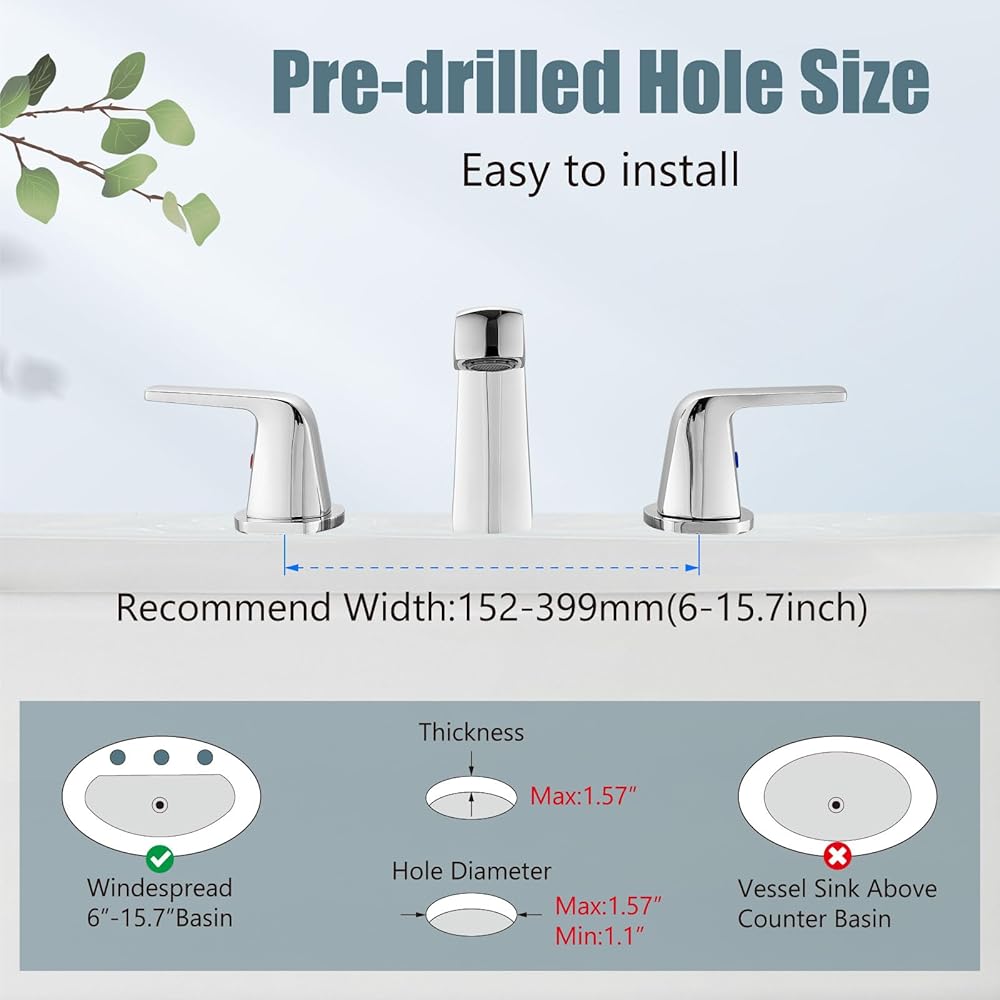 【مسافة فتحة قابلة للتعديل】يمكن تعديل مسافة تركيب صنابير الحمام هذه بين 6 و16 بوصة. يجب أن يكون قطر الثقب في الحوض 0.8-1.5 بوصة. الحد الأقصى لسمك سطح الطاولة هو 1.57 بوصة. مناسبة لاحتياجات متنوعة.