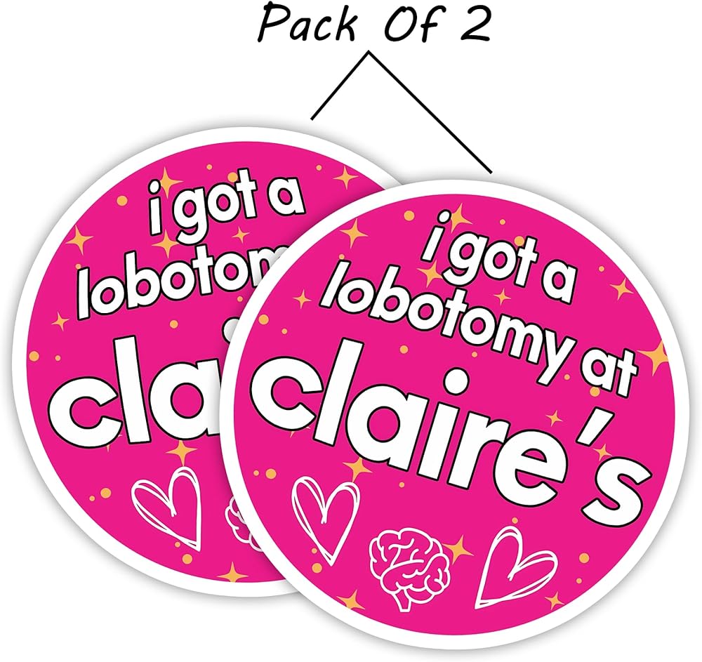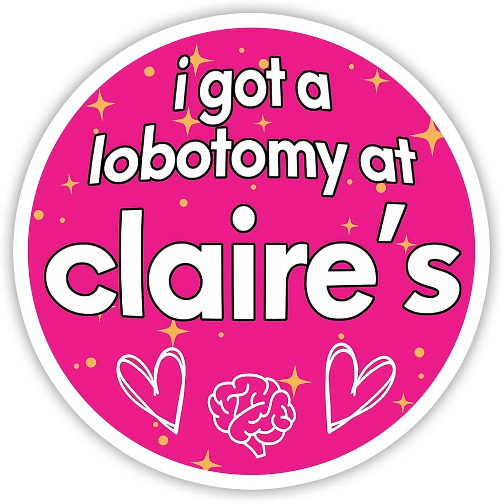 This "I Got A Lobotomy at Claire's" sticker is not just a novelty item but also a durable and delightful way to express your humor and personality on your belongings.