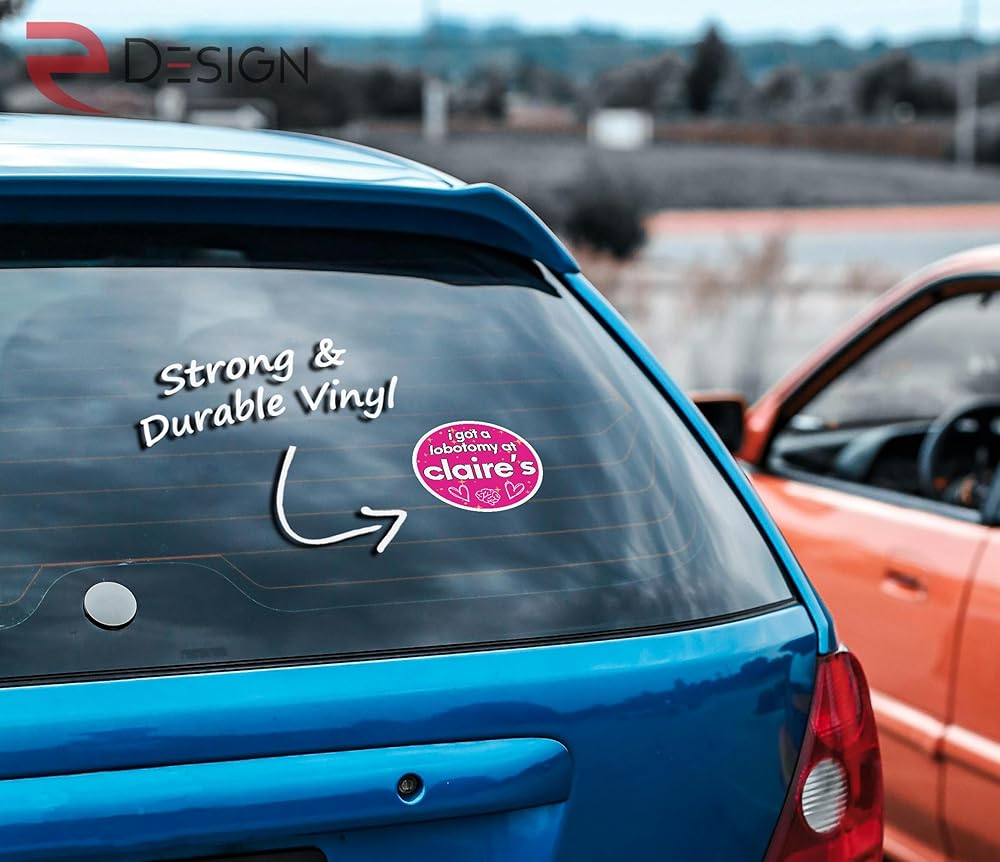 ملصق eDesign I Got A Lobotomy at Claires من الفينيل - 4 بوصات - ملصقات مصد غير مفصلية لملصقات قطع الفصوص للسيارة والشاحنة والنوافذ والكمبيوتر المحمول وأي سطح أملس (عبوة من قطعتين)