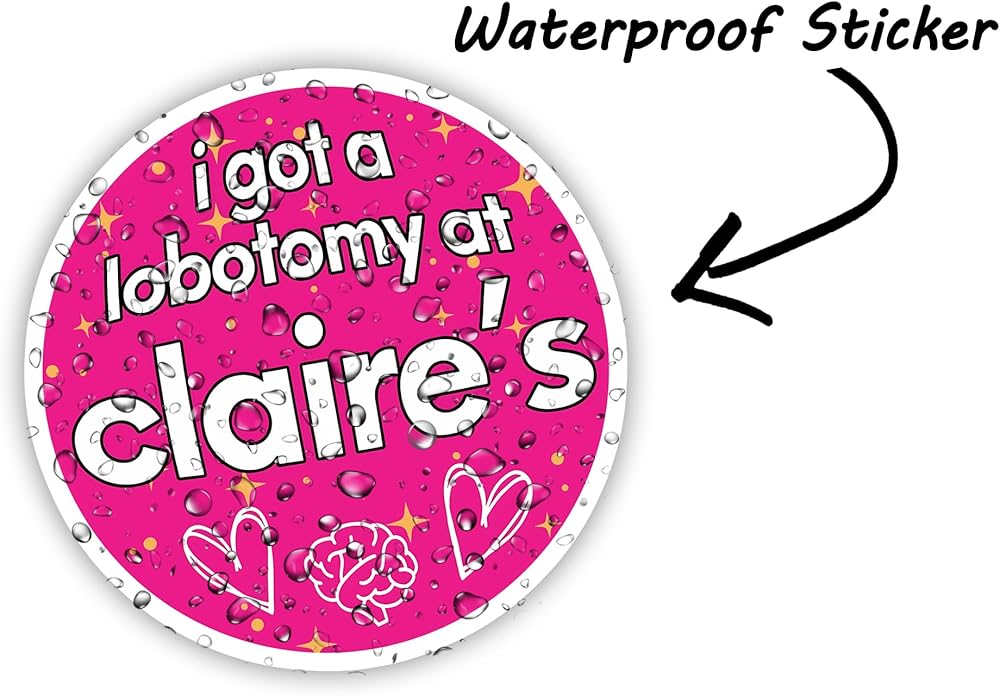 Add a pop of whimsy to your personal items with the I Got A Lobotomy at Claires sticker, a playful and vibrant decal that's sure to spark conversation and giggles. Here's the full scoop on this cheeky sticker:
