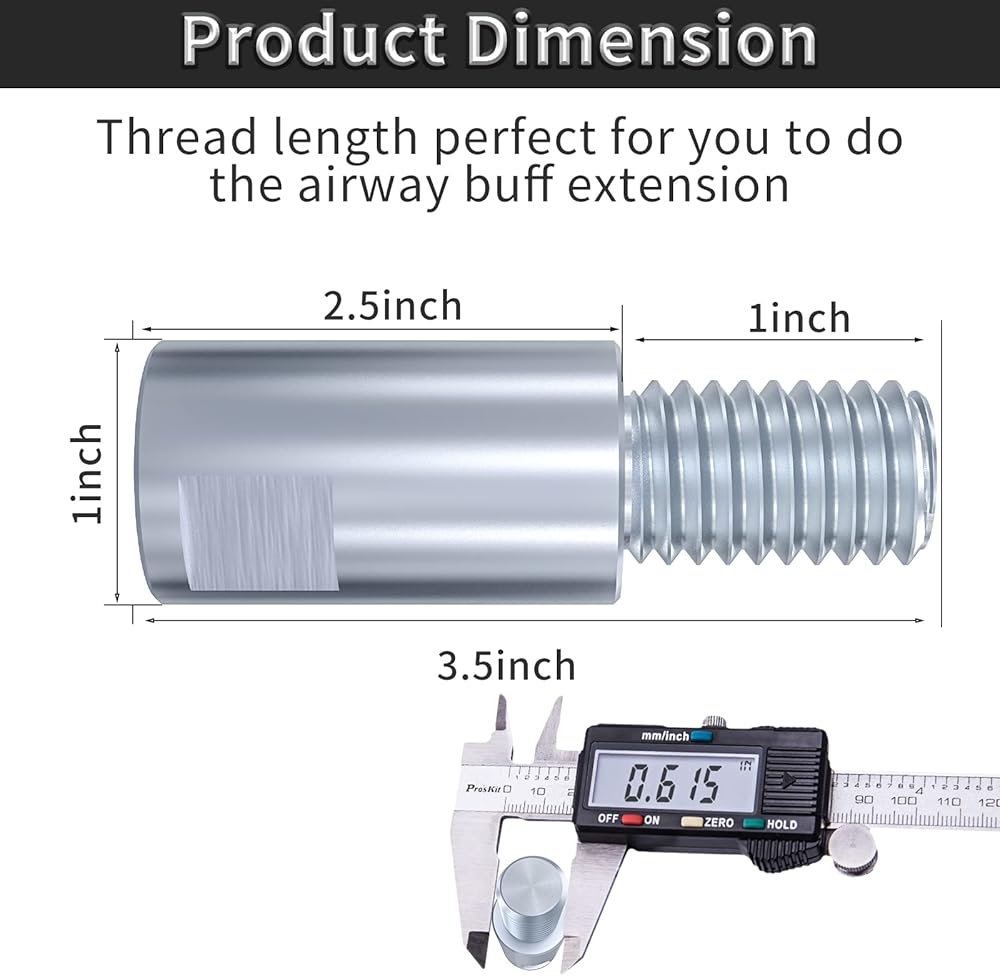 BEST SIZE: Our angle grinder extension connecting rod is measured total length of 2.5''. The diameter and Thread length is 1''. It is perfect for you to do the airway buff extension. Extension Shaft could help you to deal with the tight space when you use the angle grinder.