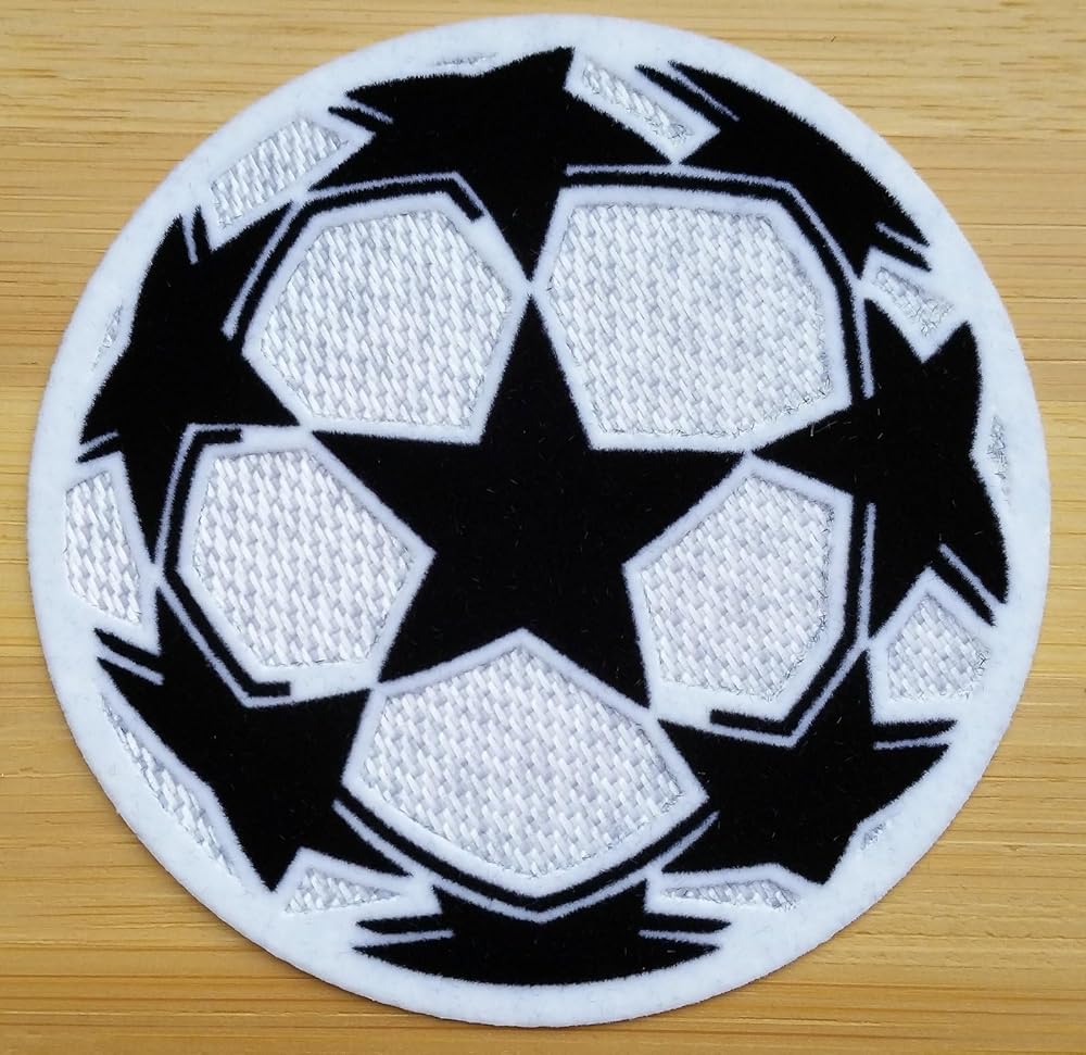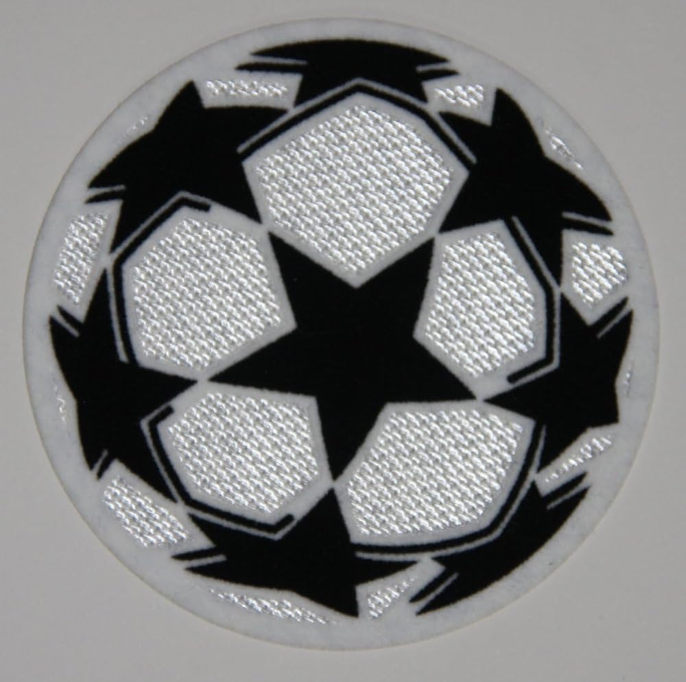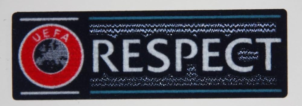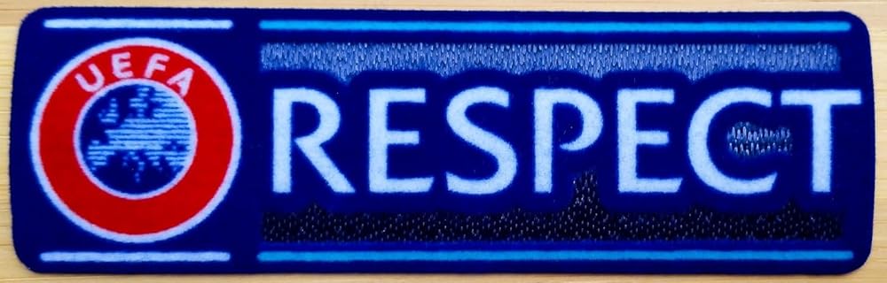 Lovely velvet UEFA Champions League iron-on soccer patches. The soccer ball patch has holographic soccer balls on the white area which you can see in the light. Ball goes on right sleeve. "Respect" goes on left sleeve.