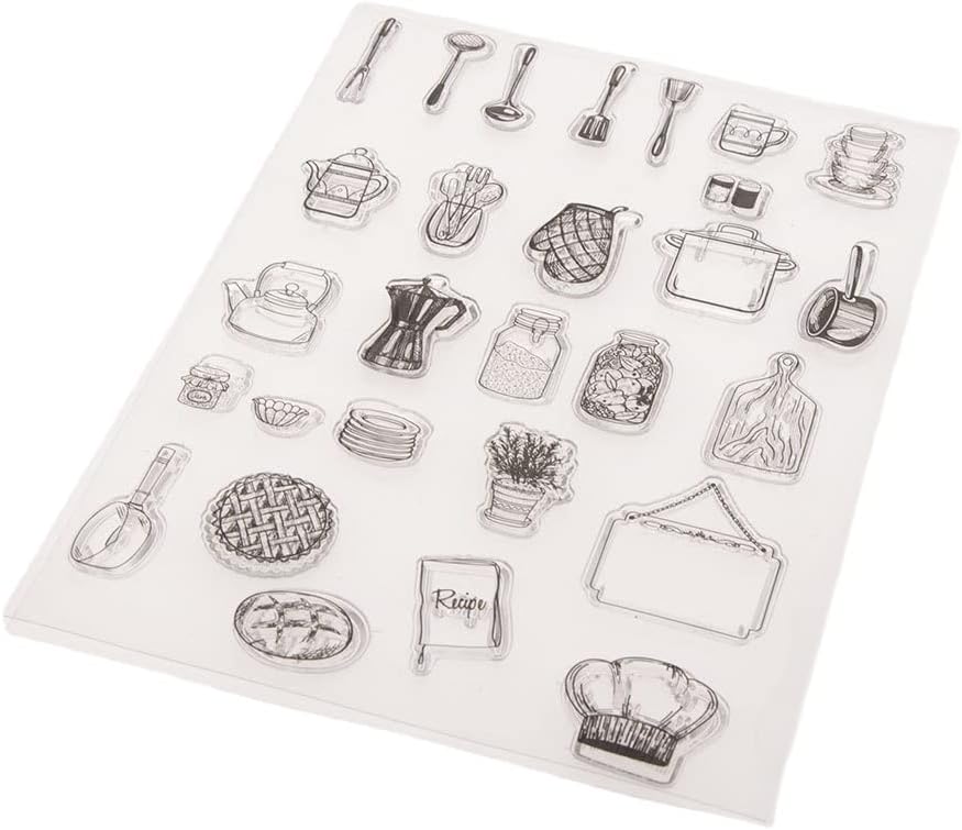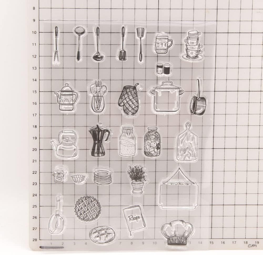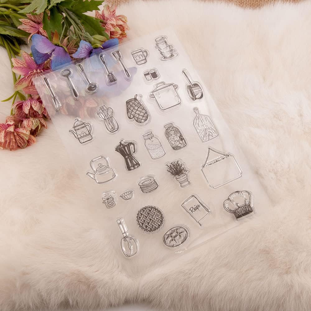 ملحقات الطبخ إبريق الشاي وعاء القهوة ختم واضح لصنع البطاقات الديكور وسجل القصاصات، ختم شفاف لحرف الألبوم النقش