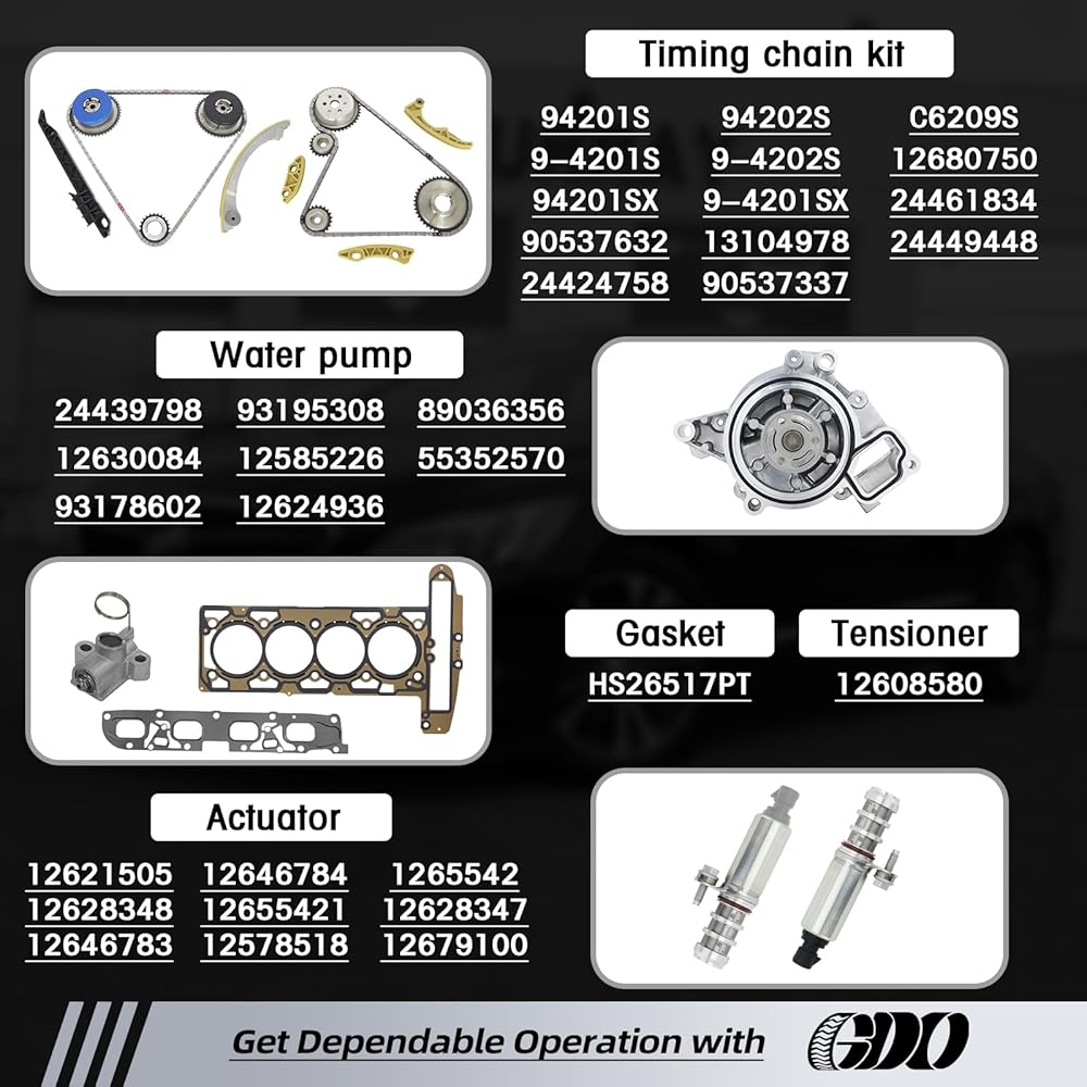 ✅ 【COMPATIBLE】:This Engine Timing Chain Kit fits for Buick Allure/Enclave/LaCrosse,Cadillac ATS/CTS/SRX/STS/XTS,Chevrolet Camaro/Caprice/Captiva Sport/Colorado/Equinox/Impala/Malibu/Traverse,GMC Acadia/Canyon/Terrain,Pontiac G6/G8/Torrent,Saab 9-3/9-4X/9-5; Please check the fitment details or use the year,make,model in the Amazon Fitment Filter System in the top left corner to confirm the compatibility before placing order.
