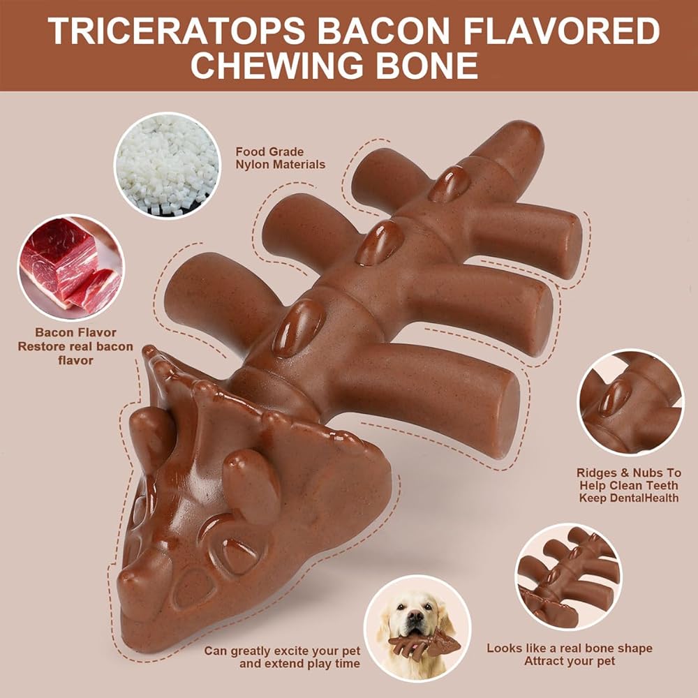 Tough Dog Chew Toy for Aggressive Chewers Indestructible Durable Nylon Dog Training Interactive Toy Teething Bone for Large Medium Dogs Real Bacon Flavored Toy to Keep Them Busy