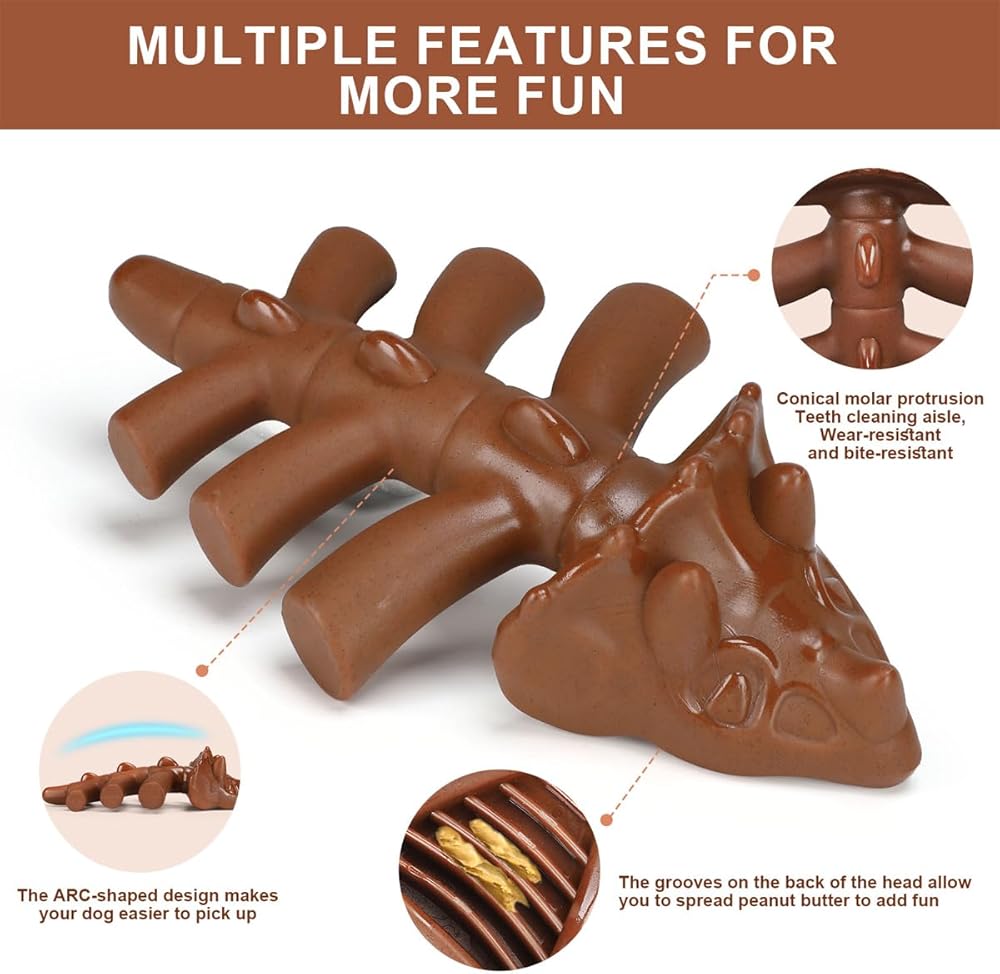 【Unique Design】The durable dog toy has triangle dragon shape, which inspires curiosity in dogs, its raised partly stimulates the dog to chew. The groove design on the surface can spread some peanut butter, allowing your dog enjoy the fun of chewing. Easy to pick up and chew, your dog can enjoy chewing or games of fetch.