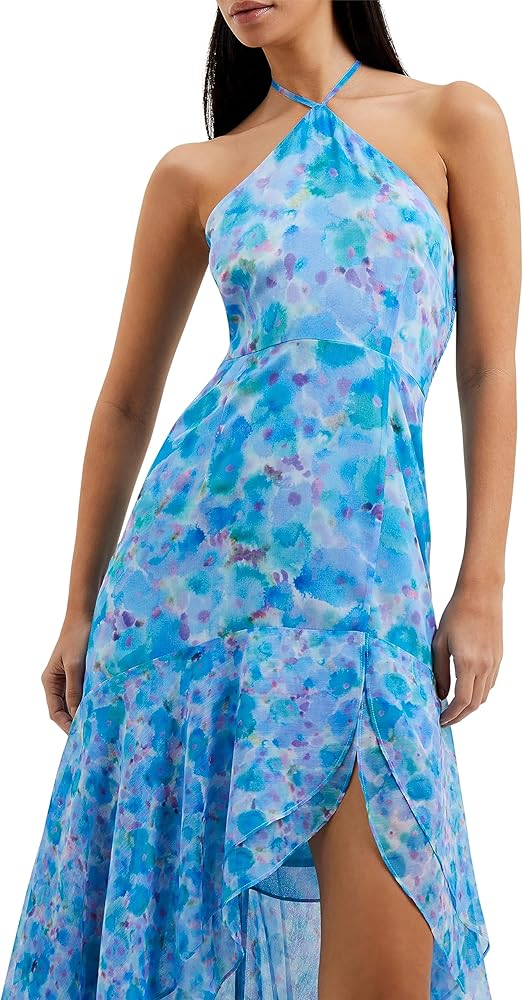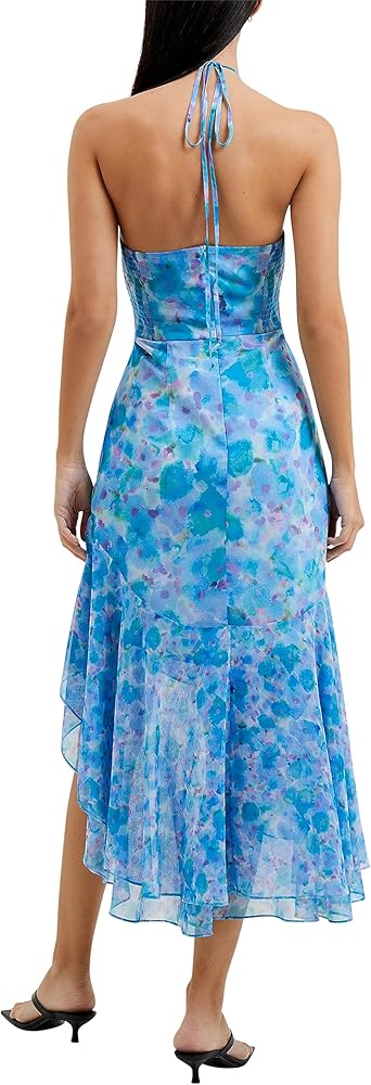 Our Gretha Hallie Crinkle Recycled Ruffle Dress is set to cause waves of compliments. This stunning summer style flaunts a form-fitting bodice hosted by a self-tie halter neck, featuring shirred side panels whilst the beautiful watercolor floral print continues to flourish across its tiered asymmetric ruffle hem. Summer days followed by sunset dates were made with this dress in mind.
