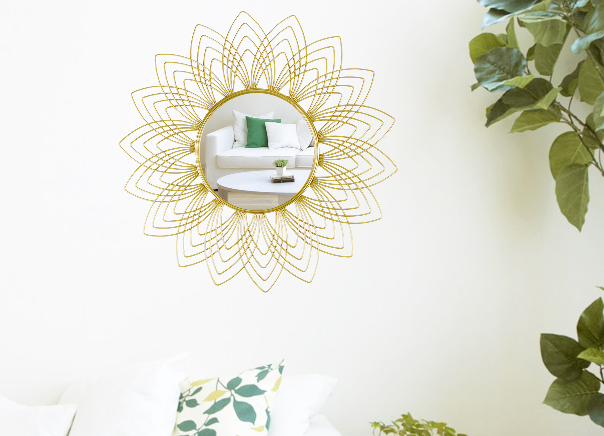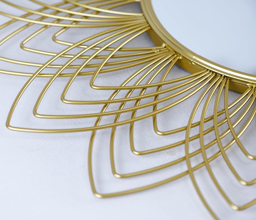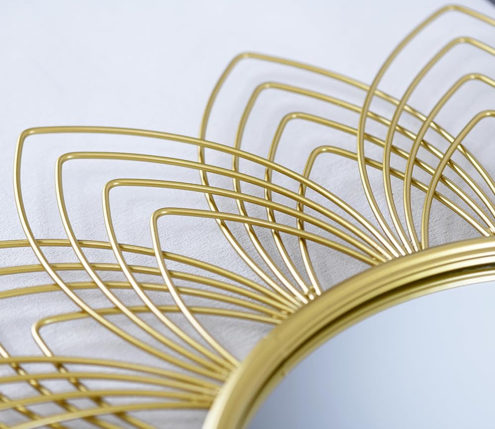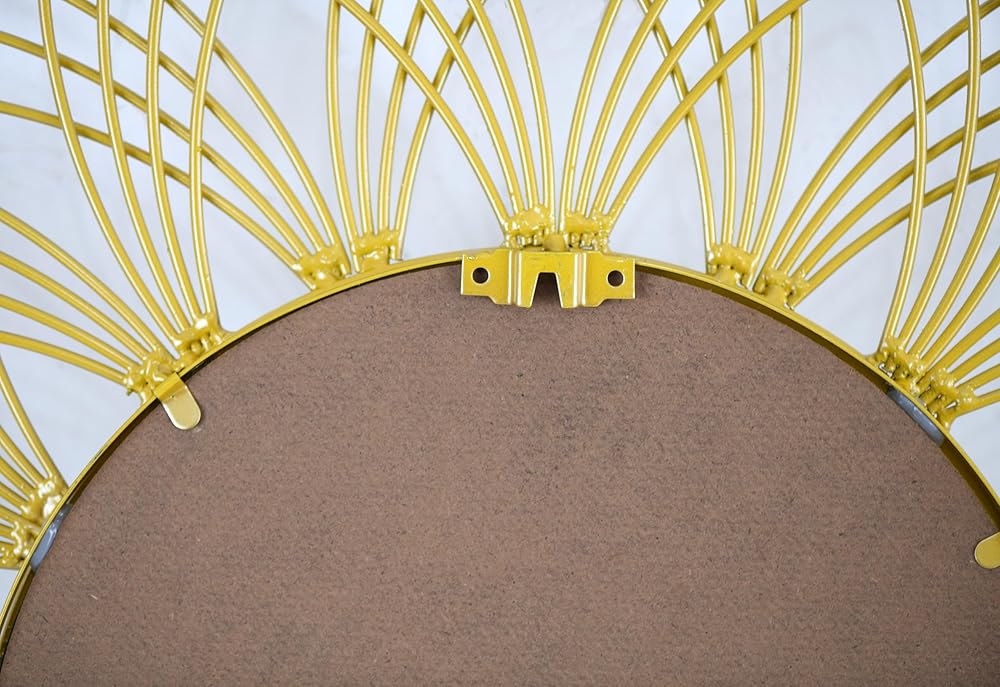 مواد عالية الجودة: المرآة مصنوعة من زجاج ومعدن عالي الجودة، مما يضمن متانتها وطويلة الأمد. الإطار المعدني مقاوم للصدأ وسهل التنظيف.