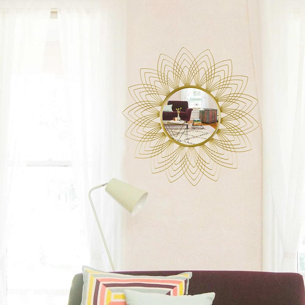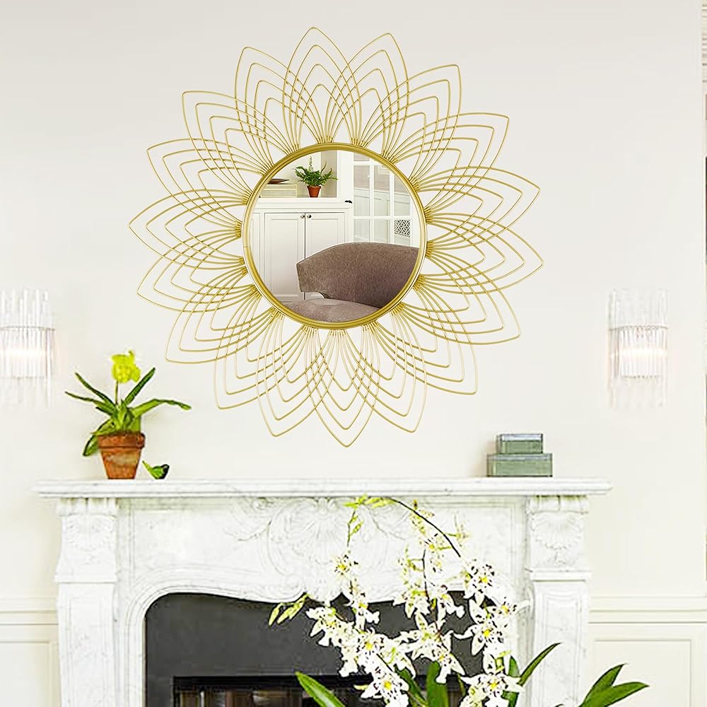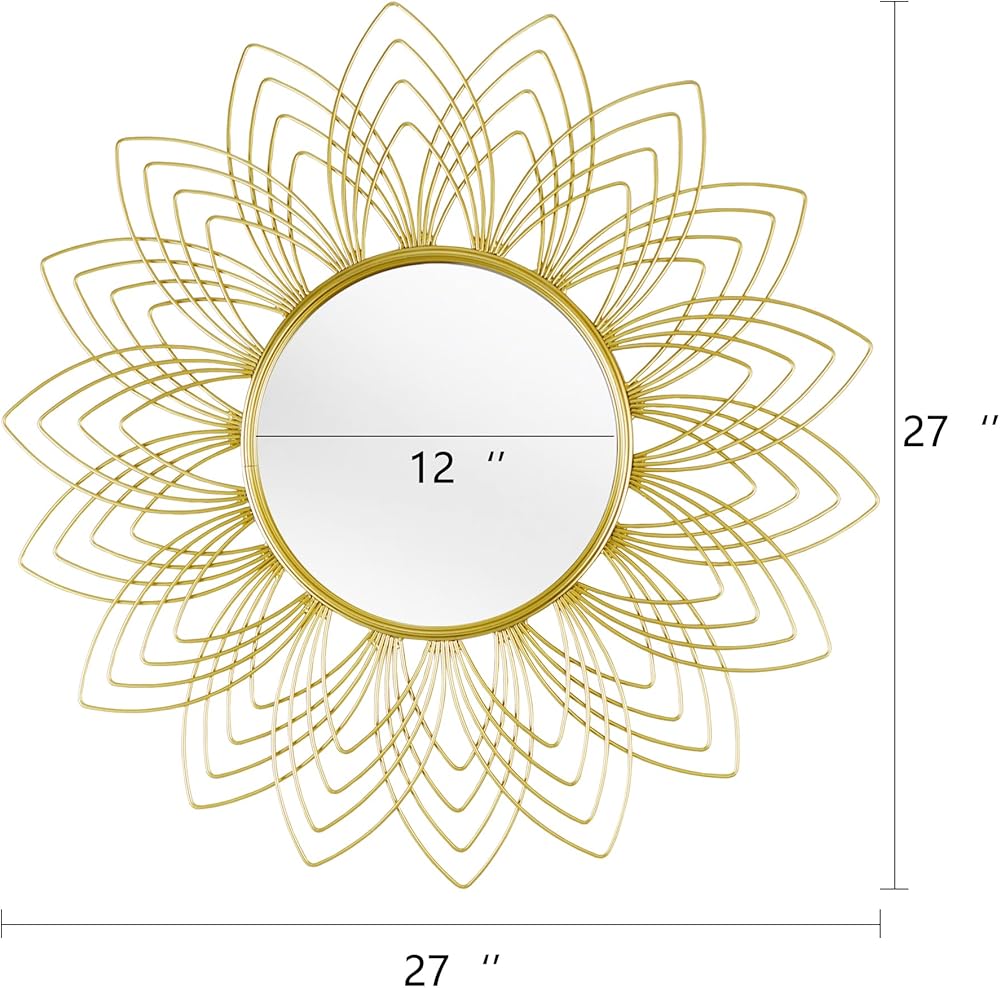 مرآة بإطار ذهبي دائري مقاس 27 بوصة: تتميز المرآة المستديرة بتصميم حديث وبسيط، مما يضيف لمسة من الأناقة إلى أي غرفة. يضيف الإطار المعدني الذهبي إحساسًا فاخرًا إلى المرآة، مما يجعلها مثالية لغرف النوم وغرف المعيشة والحمامات والمداخل.