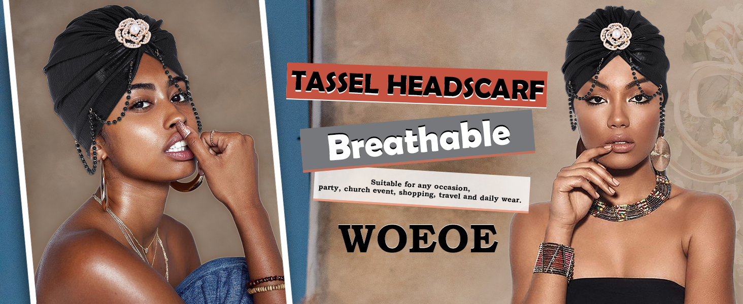 عمامة رأس نسائية مصنوعة من مادة البوليستر عالية الجودة، ناعمة ومريحة في الارتداء.