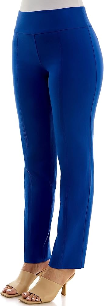 • Pull-on, full-length, flat front panel pants for a perfect flattering fit