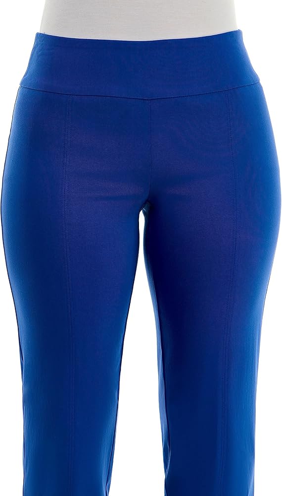 • Pull-on, full-length, flat front panel pants for a perfect flattering fit