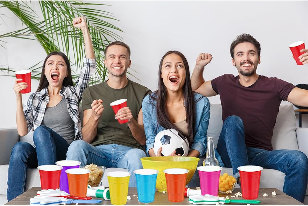 • مستلزمات الحفلات الجذابة: التباين القوي بين الألوان البيضاء في الداخل والألوان الزاهية في الخارج سيضيف المزيد من الحيوية إلى الحفلة. مثالي لحفلات الكوكتيل وأعياد الميلاد والتخرج وحفلات العطلات وغيرها من الاحتفالات. تفاخر بهذه الأكواب البلاستيكية في الحفلات للضيوف لحمل مشروباتهم المفضلة وكمساحة تخزين للوجبات الخفيفة المفضلة لديهم.