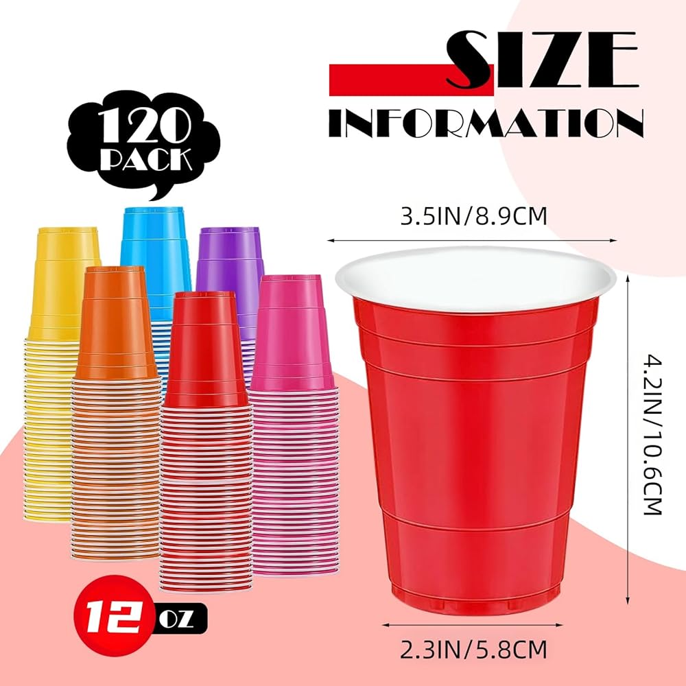 120 قطعة أكواب بلاستيكية ملونة 12 أونصة أكواب بلاستيكية ملونة 12 أونصة أكواب بلاستيكية ملونة للاستعمال مرة واحدة 12 أكواب حفلات أونصة ملونة للشرب والتذوق والوجبات الخفيفة وحفلات الشواء والنزهات