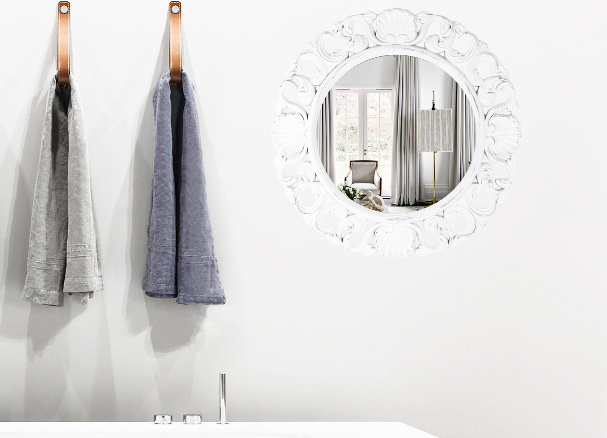 تصوير عالي الوضوح: تعكس هذه المرآة الدائرية البيضاء العتيقة الضوء بشكل مثالي وتجلب صورة عالية الوضوح وخالية من التشوهات إلى غرفة معيشتك. يمكن لهذه المرآة البيضاء العتيقة أن تجلب إحساسًا أفضل بالمساحة والضوء إلى غرفتك.