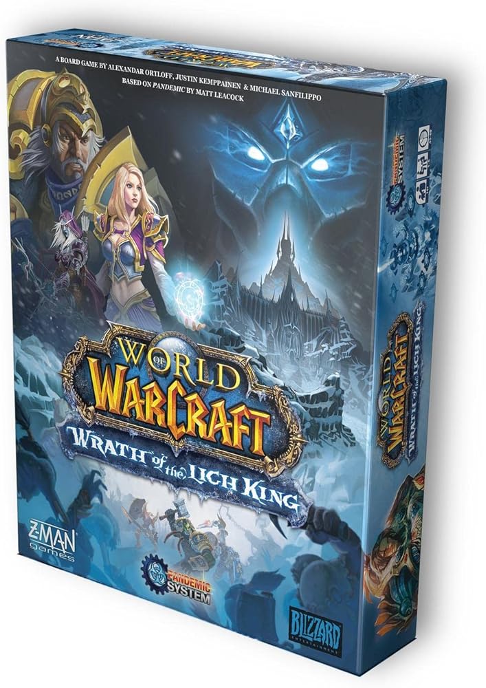 Calling all worthy defenders of Azeroth! The Lich King and his undead scourge threaten to overrun the continent of Northrend. Will you unite and stand against him? World of Warcraft: Wrath of the Lich King – A Pandemic System Board Game combines the wildly popular World of Warcraft setting with Pandemic's innovative cooperative gameplay. Players take on the roles of legendary heroes, battling ghouls and abominations, completing quests, and at long last, facing the Lich King at Icecrown Citadel. Can you save the world from the merciless Lich King or will his cursed blade claim yet another soul?