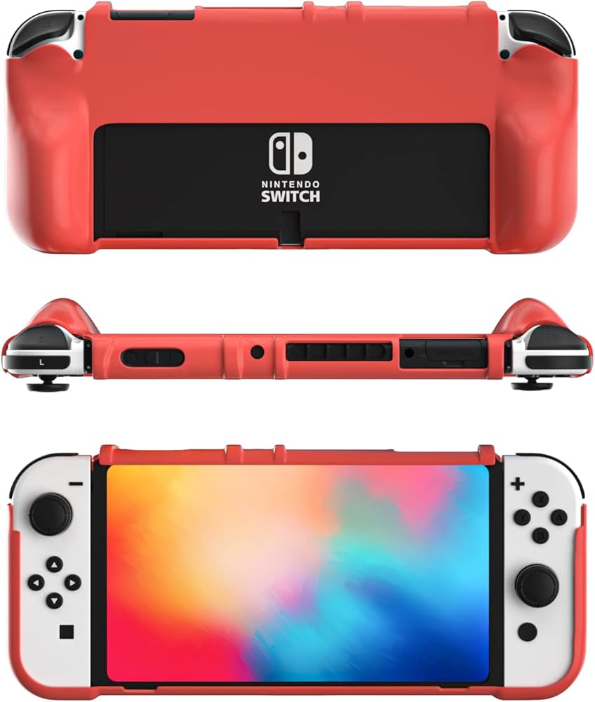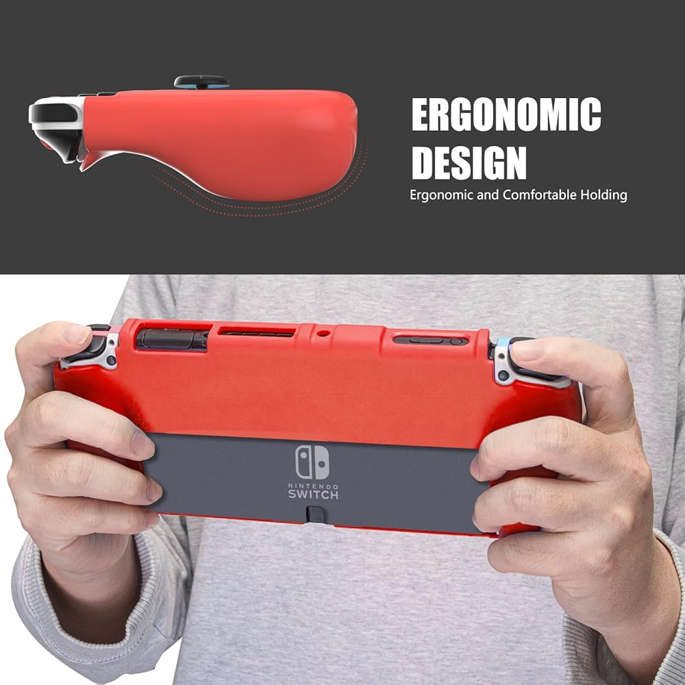 حافظة Switch OLED القابلة للإرساء - تتناسب حافظة TPU الحمراء الأنيقة لدينا بشكل مثالي مع قاعدة توصيل Switch OLED، مما يجعل وحدة التحكم الخاصة بك تبدو رائعة مع حمايتها من الخدوش والصدمات.