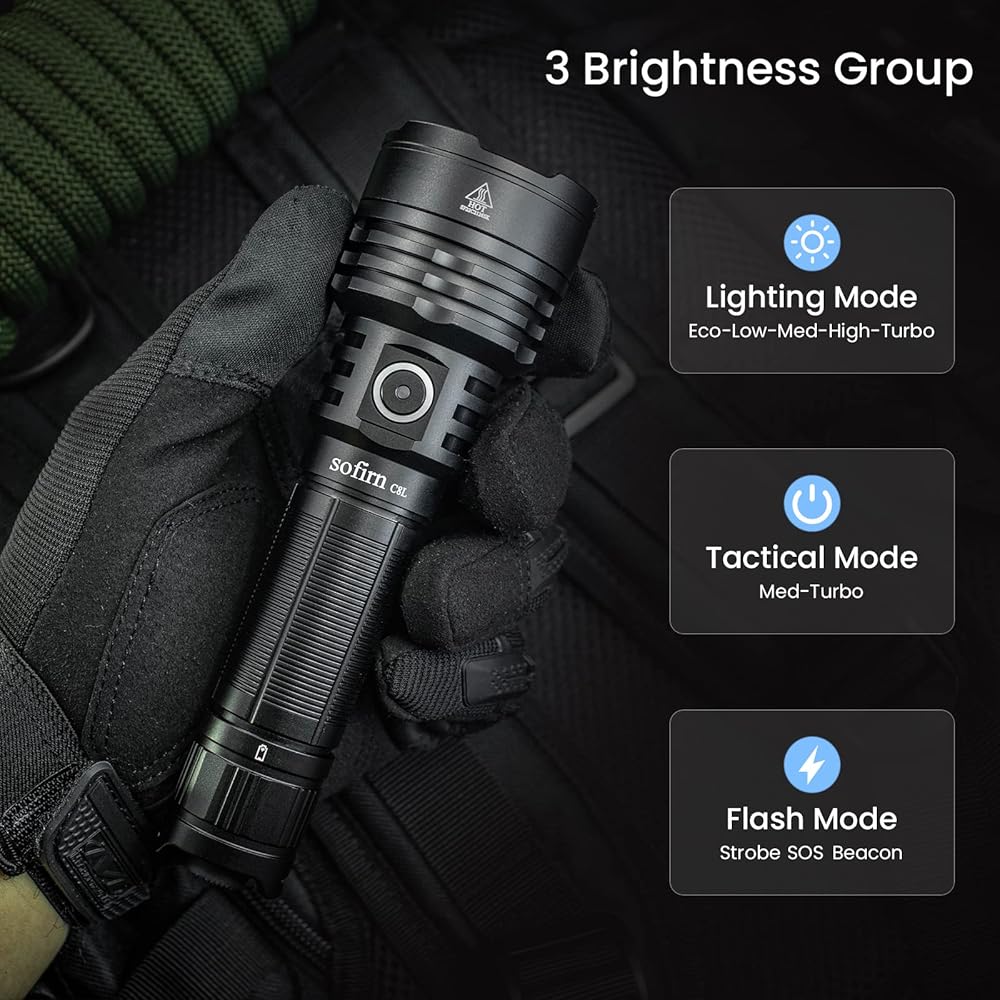 مصباح يدوي sofirn C8L قابل لإعادة الشحن مع 3100 لومن، مصباح يدوي تكتيكي يصل إلى 531 مترًا، مقاوم للماء IPX8، للطوارئ، شديد التحمل، البحث والاستخدام الخارجي