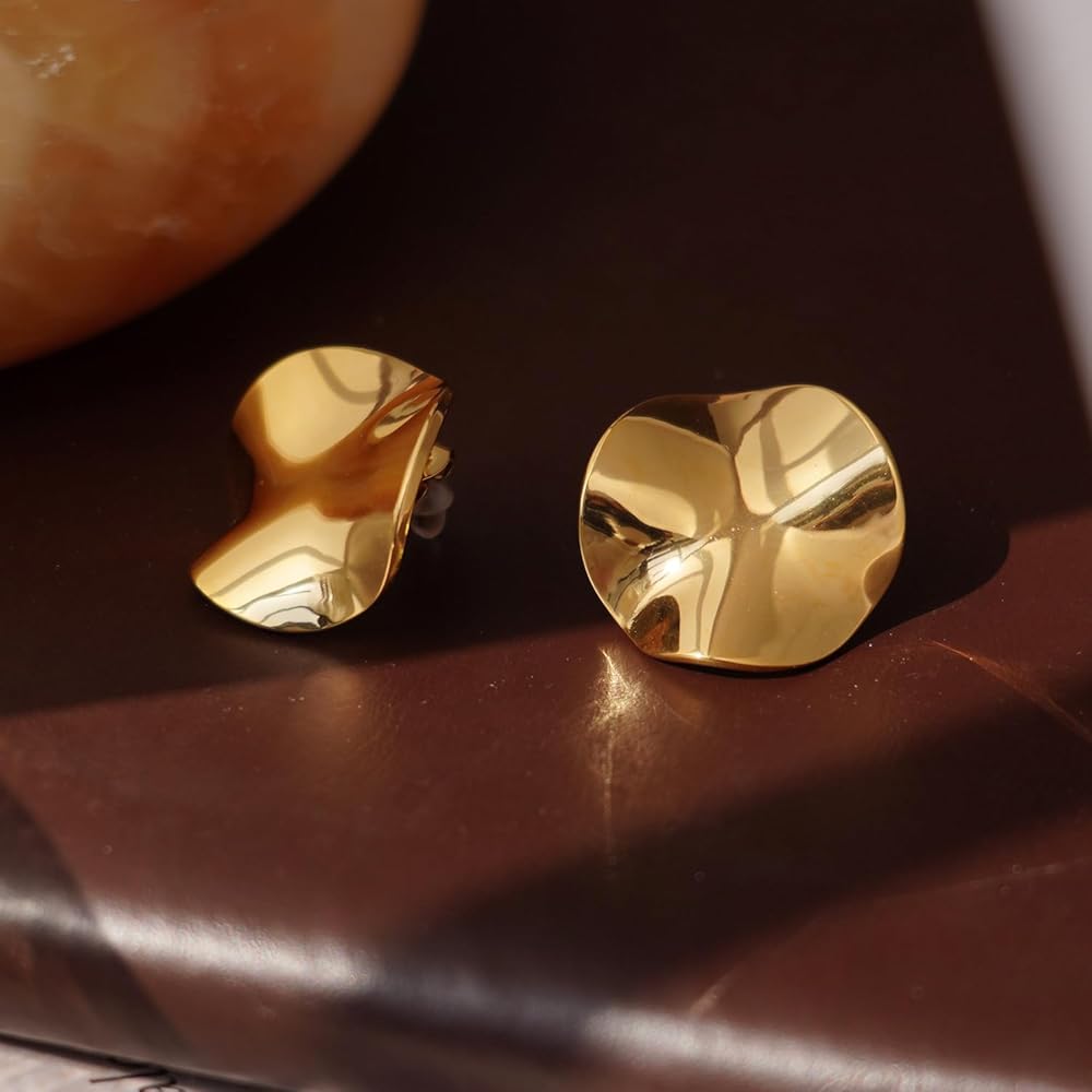 أقراط أذن على شكل قرص مطروق للنساء، أقراط دائرية دائرية الشكل مطلية بالذهب عيار 18 قيراط، أقراط أنيقة فريدة من نوعها من الفولاذ المقاوم للصدأ لا تسبب الحساسية مجوهرات بسيطة