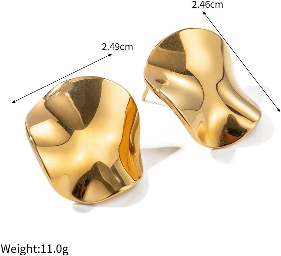 هيكل متين من الفولاذ المقاوم للصدأ: مصنوعة من الفولاذ المقاوم للصدأ عالي الجودة، هذه الأقراط لا تبهر بجاذبيتها الذهبية فحسب، بل تضمن أيضًا المتانة ومقاومة التشوه، مما يجعلها إضافة دائمة إلى مجموعة الإكسسوارات الخاصة بك.