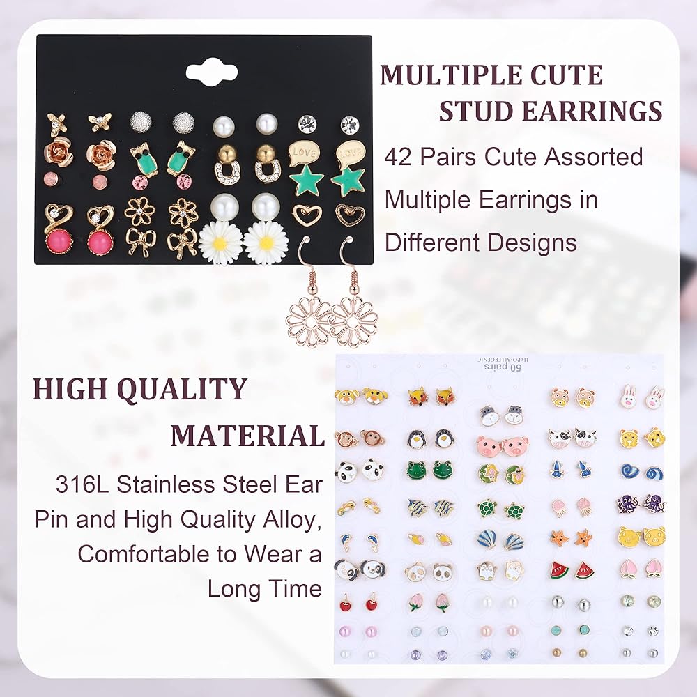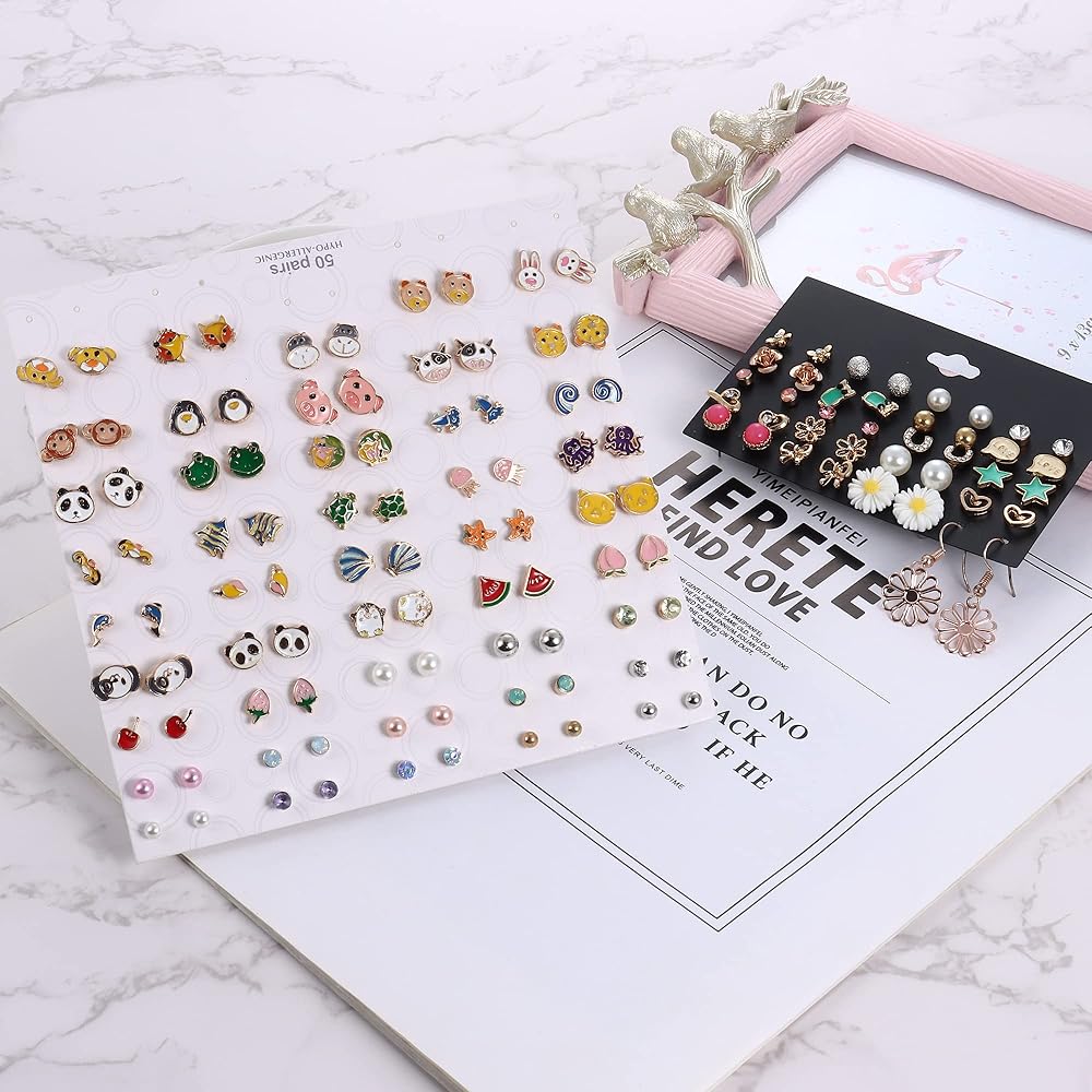 أقراط متعددة لطيفة - طلب واحد يحتوي على 65 زوجًا من الأقراط المتنوعة اللطيفة بتصميمات مختلفة: الحيوانات واللؤلؤ والفواكه والأسماك والزهور. العديد من الأنماط للاختيار من بينها لكل مناسبة. هناك الكثير للاختيار من بينها، ويمكنك مفاجأة الجميع باختيارك المختلف لهذا اليوم.