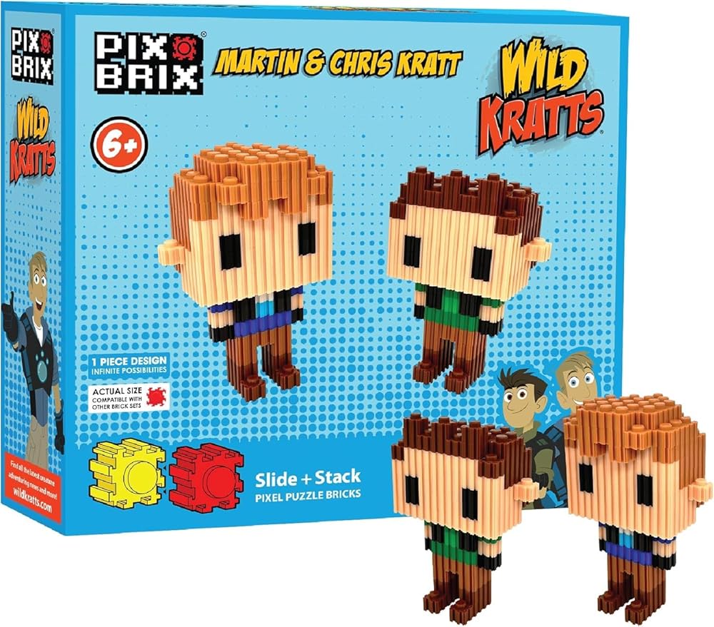 Pix Brix - مجموعة Wild Kratts Pixel Art Kit - شخصيات Kratt Brothers، 329 قطعة - شريحة حاصلة على براءة اختراع + مكعبات بناء ألغاز مكدسة، اصنع شخصيات مارتن وكريس - ألعاب جذعية، للأعمار من 6 سنوات فما فوق