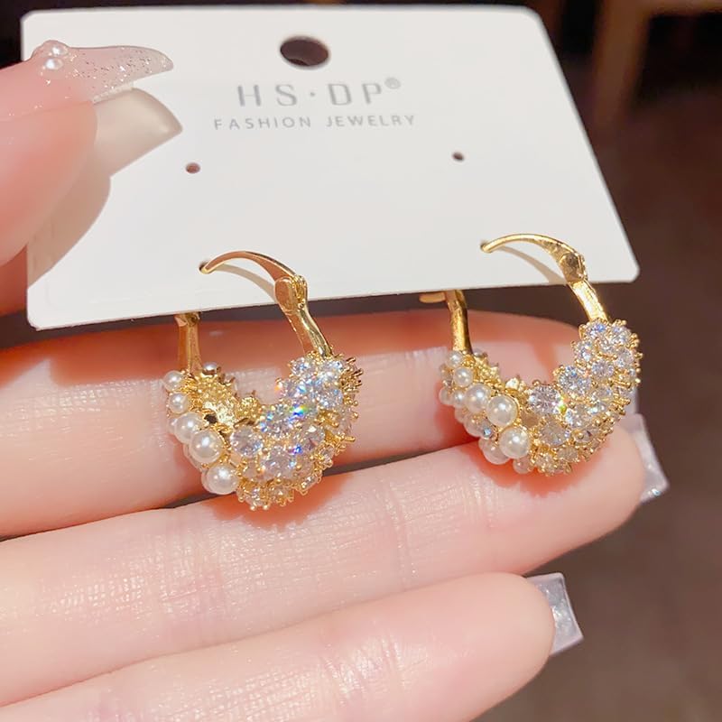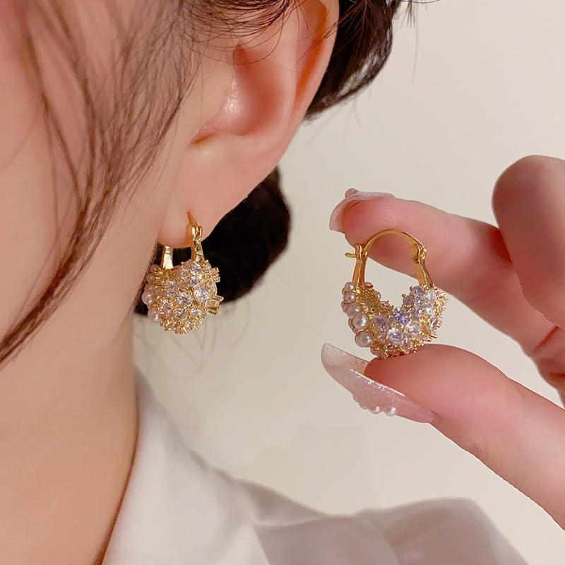 This Pearl Chunky Gold Hoop Earring Can Showcase Your Unique Fashion Charm And Generous Temperament.