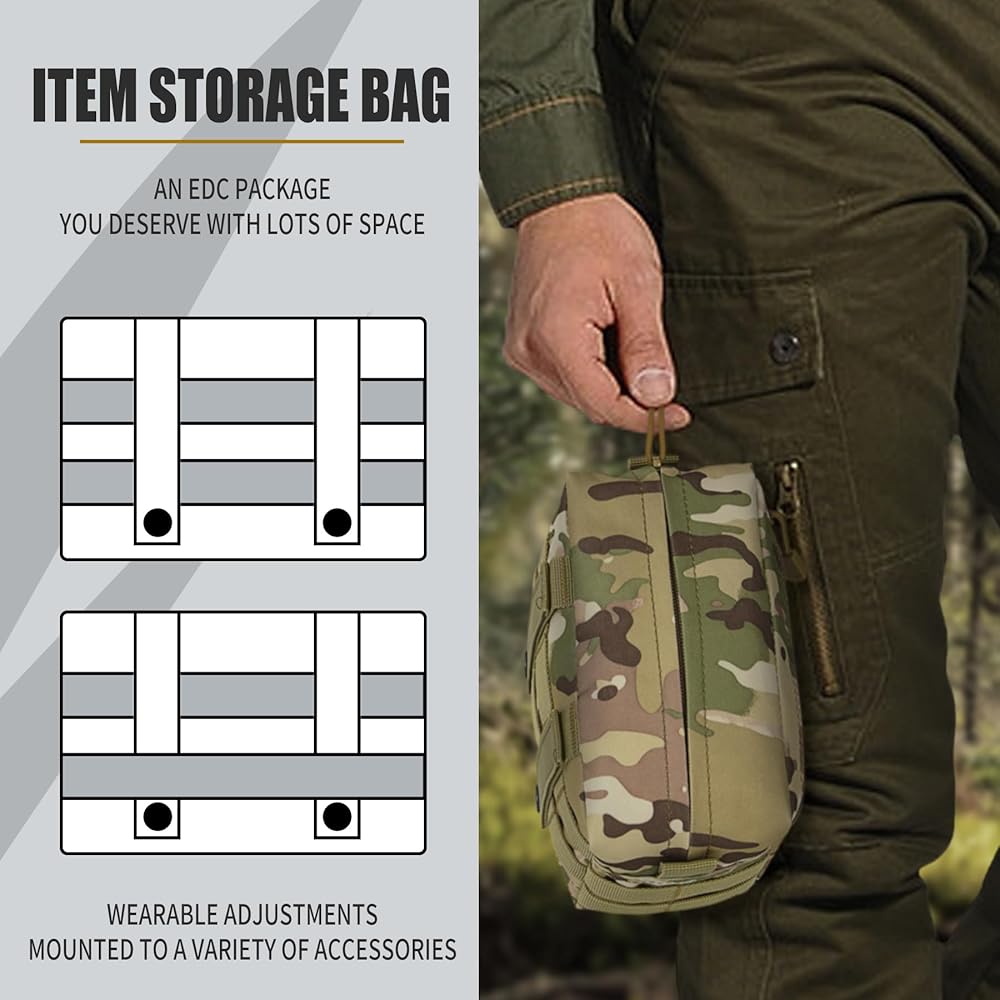 الحجم: 7 بوصة × 3.54 بوصة × 5.1 بوصة/18 سم × 9 سم × 13 سم (طول × عرض × ارتفاع). الحقيبة التكتيكية ذات سعة كبيرة ويوجد جيوب داخلية مزدوجة وجيب أمامي واحد. تضيف هذه الحقيبة متعددة الاستخدامات الكثير من التخزين للأشياء الصغيرة التي كان سيتم دفنه في حقيبتك الرئيسية.