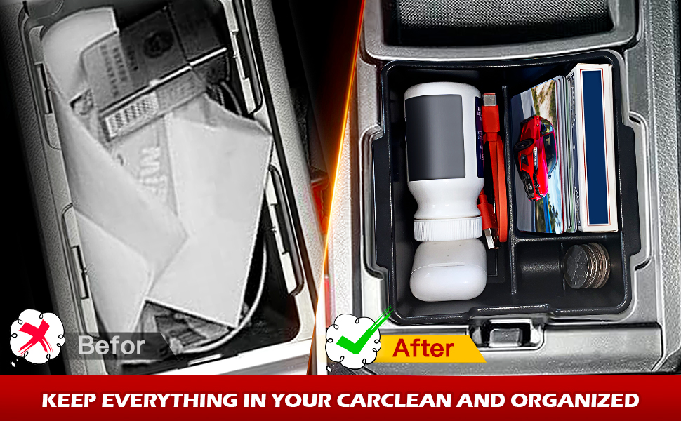 الوصول السريع: مزود بوسادات مطاطية مضادة للانزلاق قابلة للإزالة، يضمن منظم وحدة التحكم في السيارة هذا الوصول السريع إلى العناصر الخاصة بك مع منعها من إحداث الضوضاء. يضمن التصميم المناسب حسب الطلب ملاءمته مثل القفازات في سيارتك، مما يحافظ على أغراضك آمنة ويمكن الوصول إليها بسهولة.