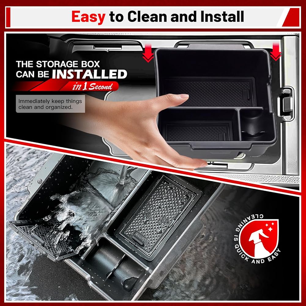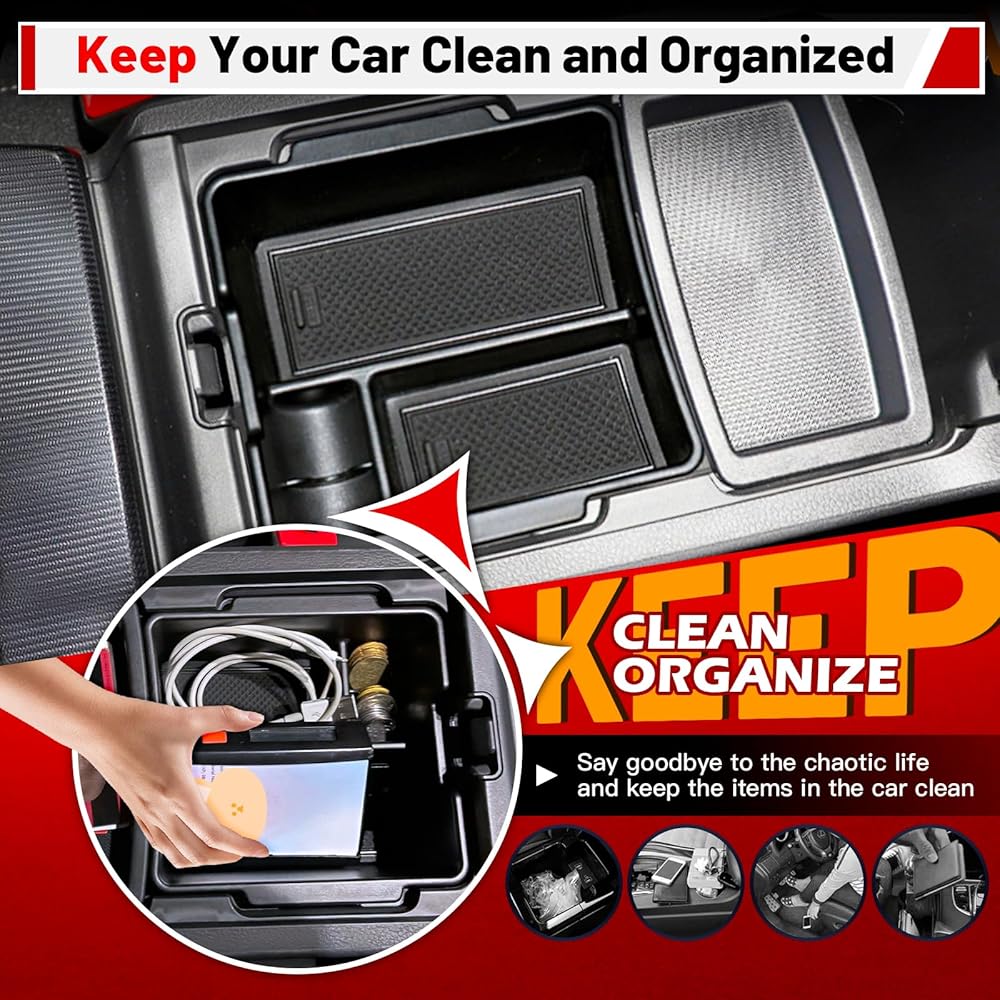 سهل التنظيف: مصنوع من مادة بلاستيك ABS عالية الجودة، صندوق التخزين هذا سهل التنظيف، مما يضمن الحصول على سيارة داخلية أنيقة ومرتبة في جميع الأوقات. من السهل أيضًا الحفاظ على المادة المقاومة للتآكل، مما يجعلها حلاً مفيدًا للحفاظ على تنظيم سيارتك.