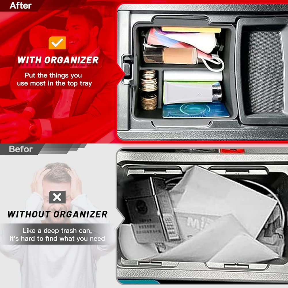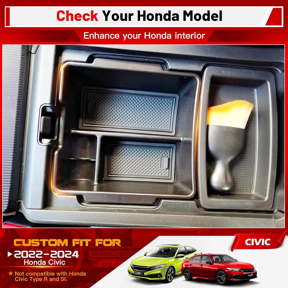 ملاءمة مخصصة لـ 2022-2024 Ho-nda Civic: صندوق تخزين منظم وحدة التحكم المركزية هذا مناسب خصيصًا لـ 2022 2023 2024 Ho-nda Civic 11 Gen EX LX Sport Touring Center Concole (لا يناسب 2022-2023 Civic Type R وCivic Si ، وكذلك 2016-2021 Civc 10th Gen)، مما يوفر مساحة مناسبة للعناصر التي يجب الحصول عليها بسهولة. فهو يضاعف المساحة لتعزيز التنظيم، مما يزيد من كل بوصة من الجزء الداخلي لسيارتك.