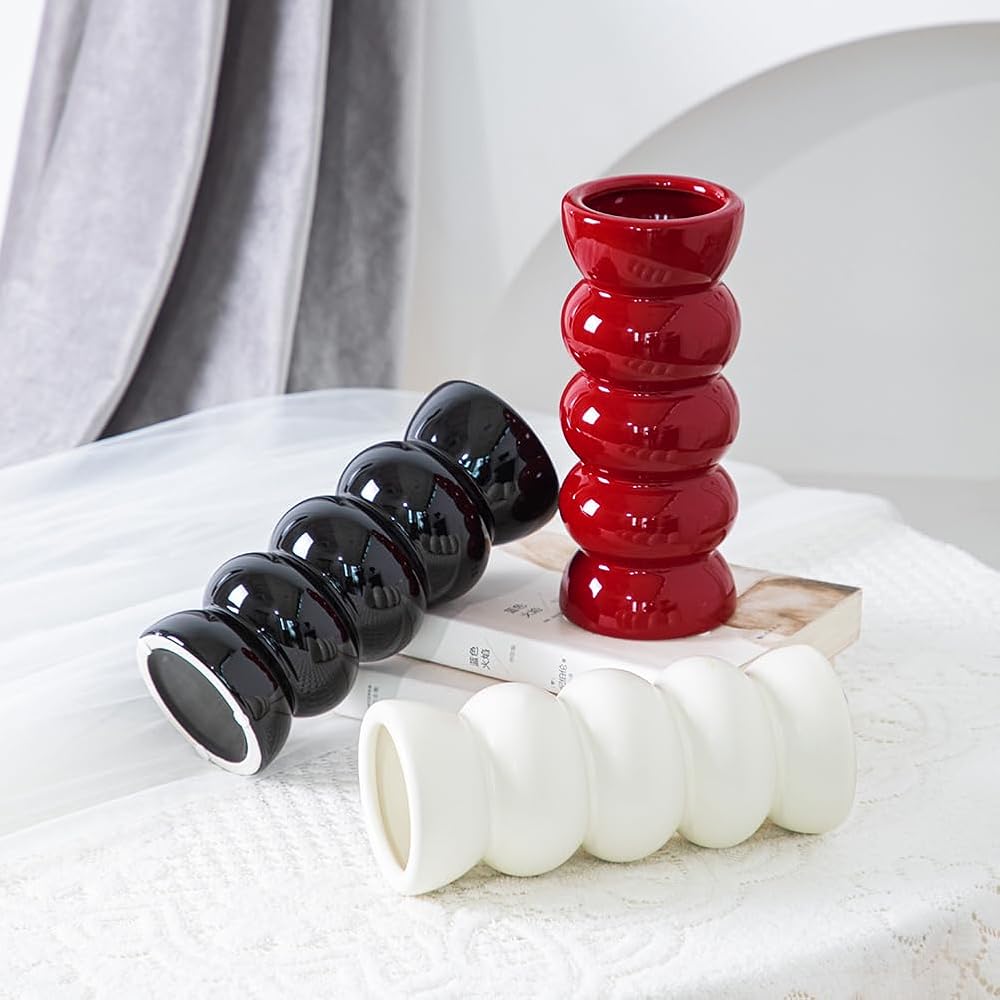 نسيج مموج حديث: مزهرية سيراميك بسيطة ذات ملمس مضلع وأبيض لامع أنيقة وبسيطة وتناسب أي مساحة مع إضافة الاهتمام والأناقة.