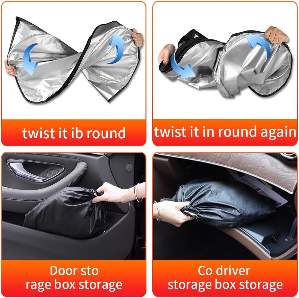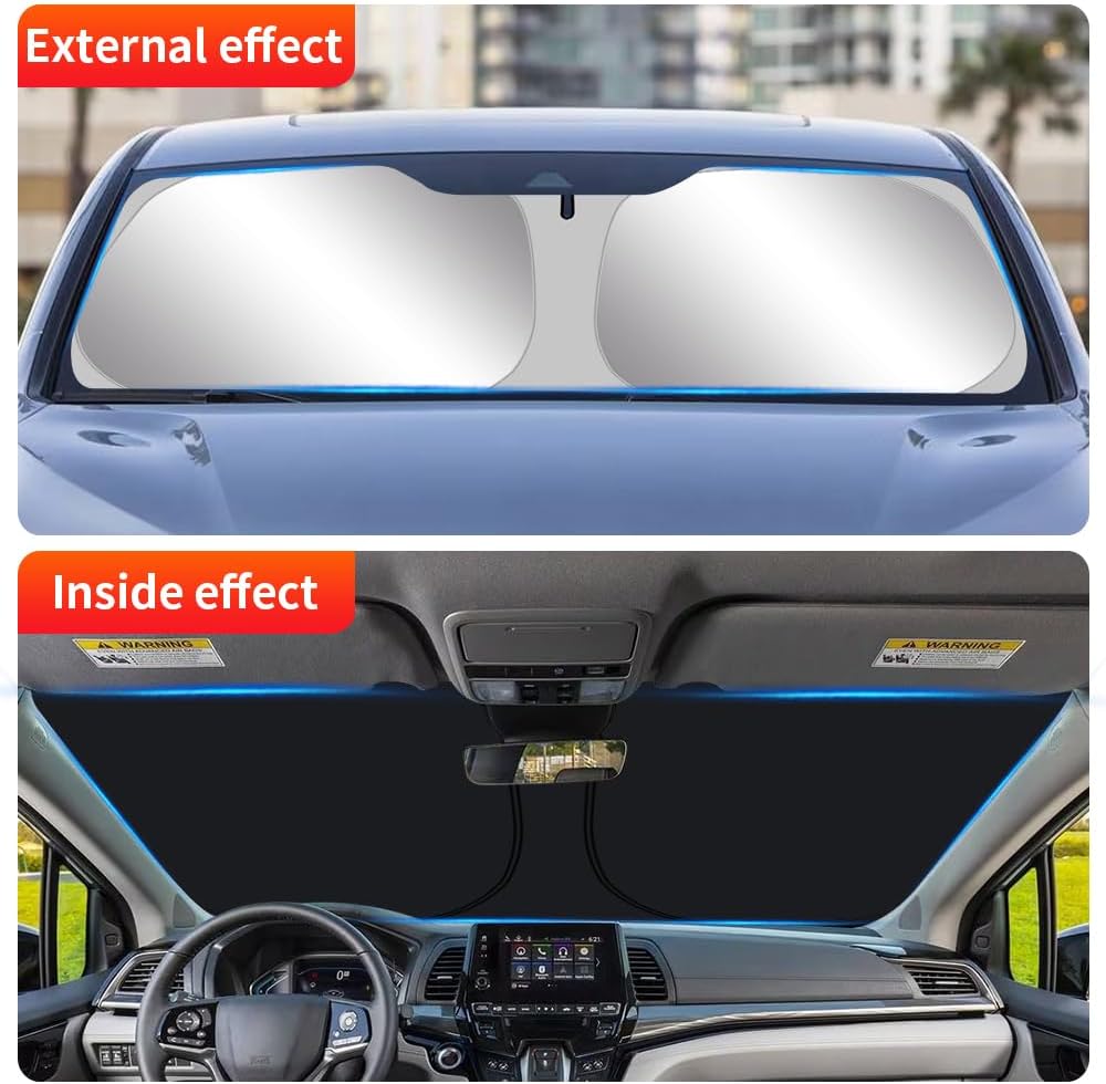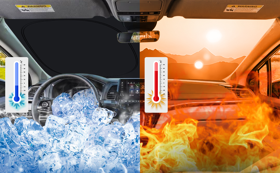 • 【حافظ على الراحة】يحتوي المظلة الأمامية للزجاج الأمامي على طلاء فضي يعكس الحرارة، ويقلل من تراكم الحرارة بما يصل إلى 40 درجة فهرنهايت، ويحجب ما يصل إلى 99% من الأشعة فوق البنفسجية الضارة. عندما تركب في السيارة، لم يعد الجزء الداخلي ساخنًا. ولكن بيئة باردة ومريحة.